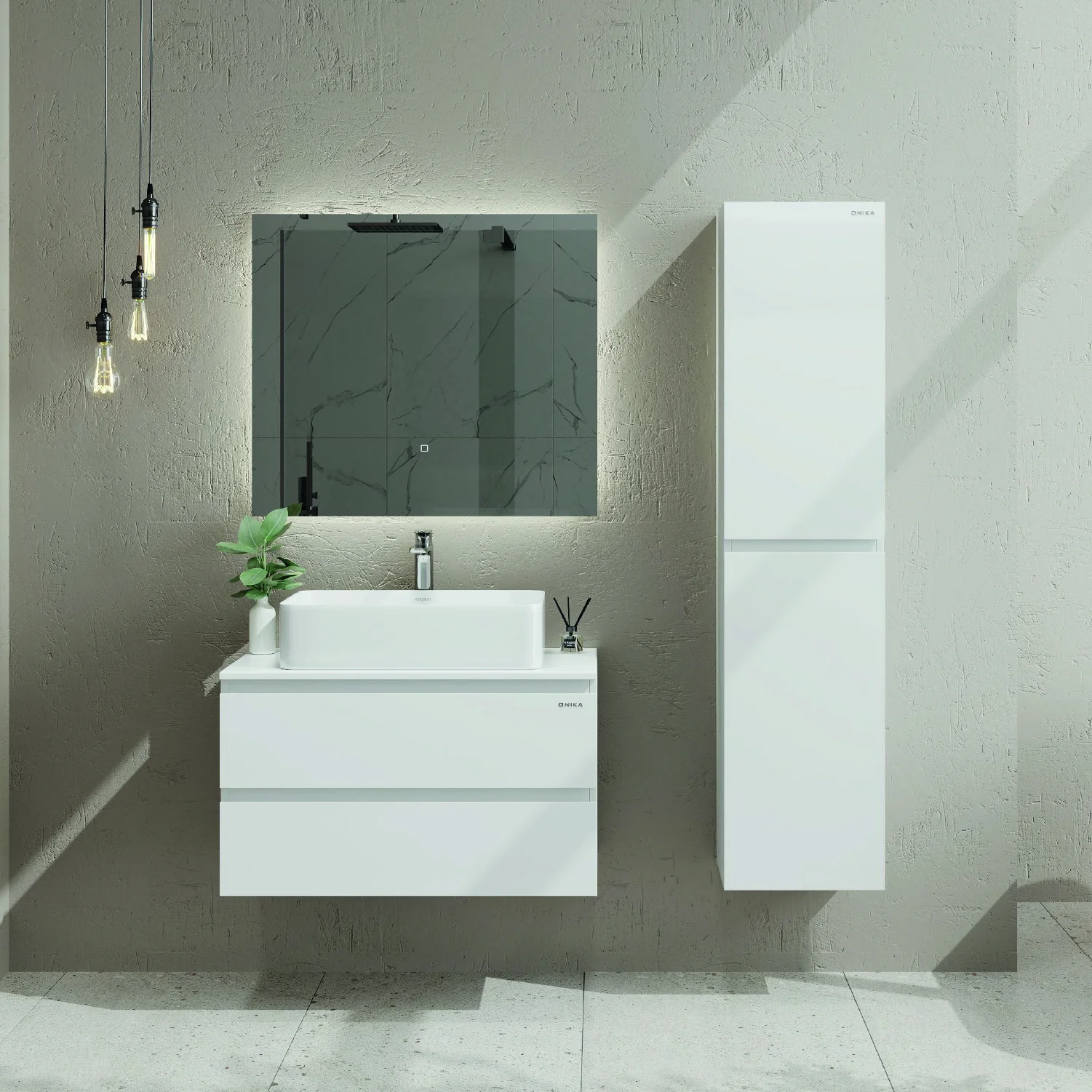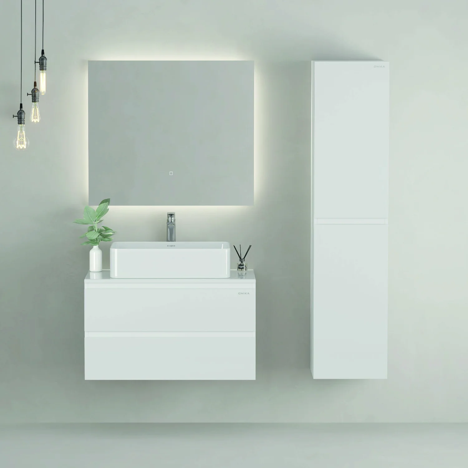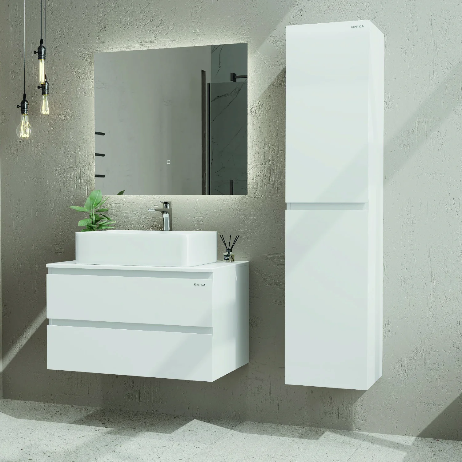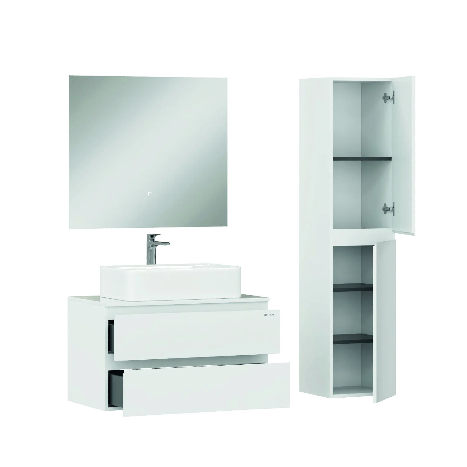 Подвесная тумба Onika Алеста 80 - идеальное решение для создания функционального и современного интерьера вашей ванной комнаты: белоснежный глянец, минимализм и интегрированные ручки.