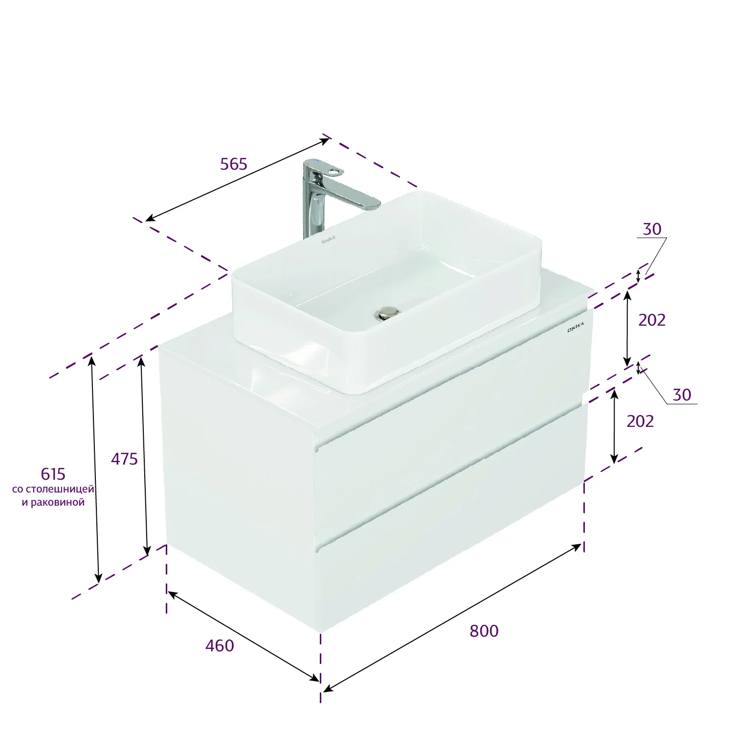 Размеры тумбы без учета раковины: 80x46x46 см.