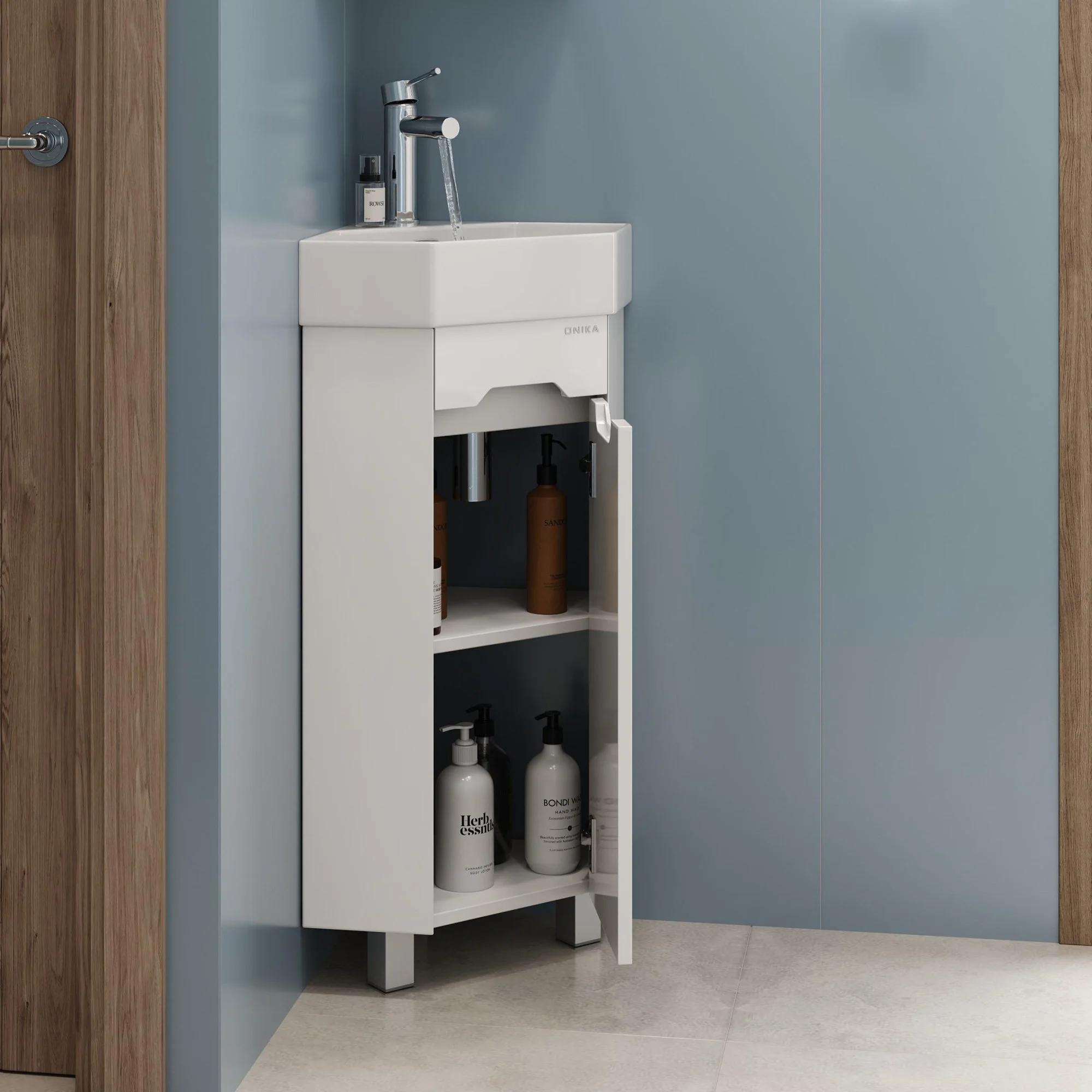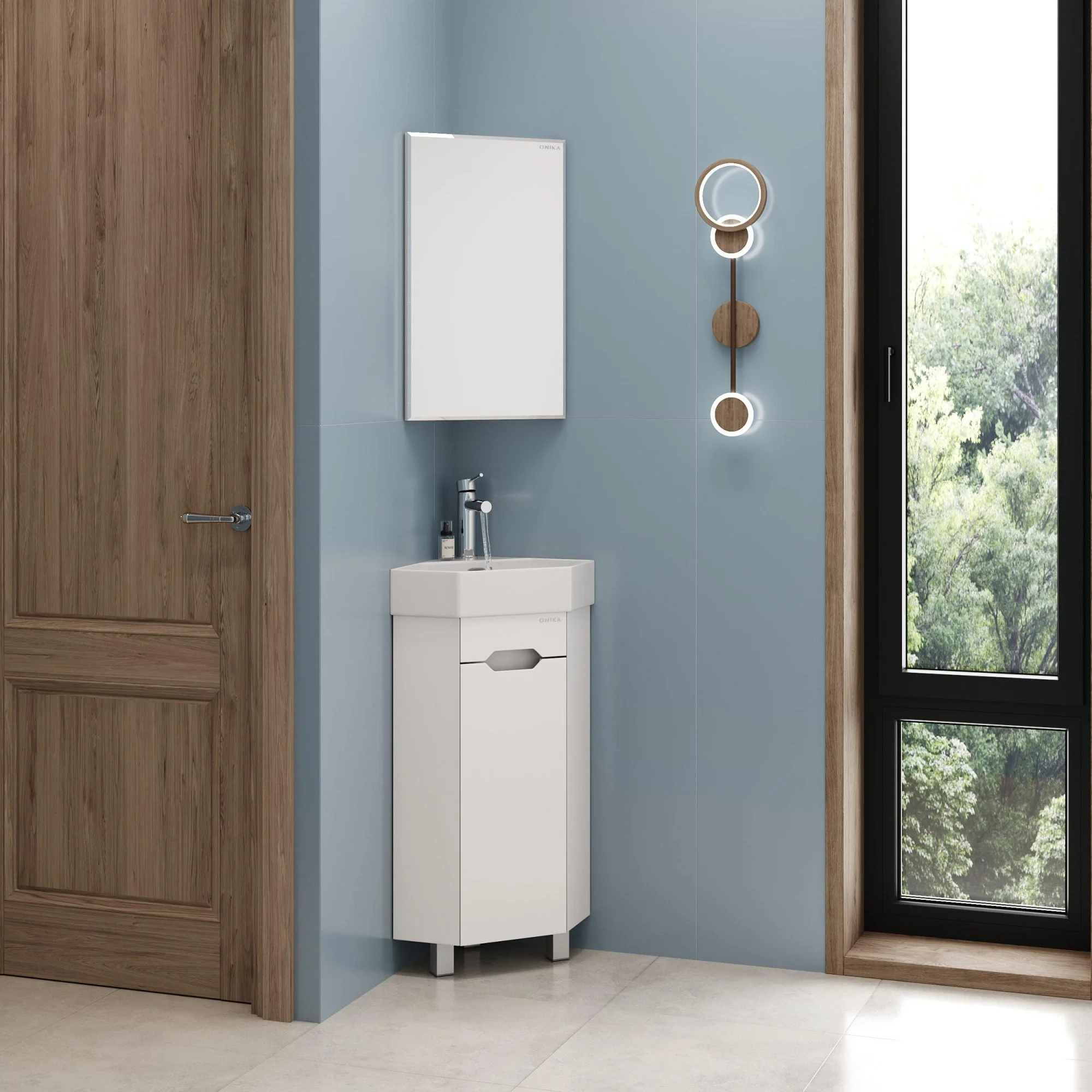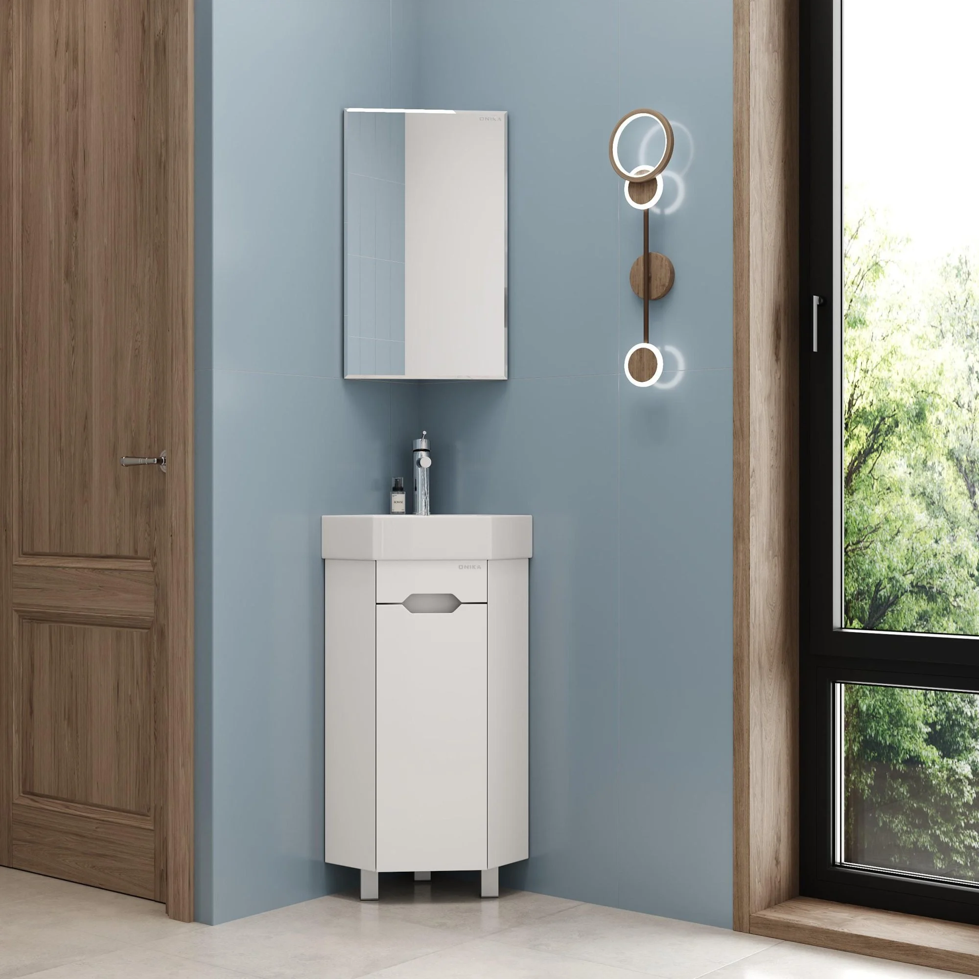 Угловая напольная тумба для ванной комнаты Onika Айленд 35 сочетает в себе стильный минималистичный дизайн, белую глянцевую поверхность и высочайшее качество исполнения.