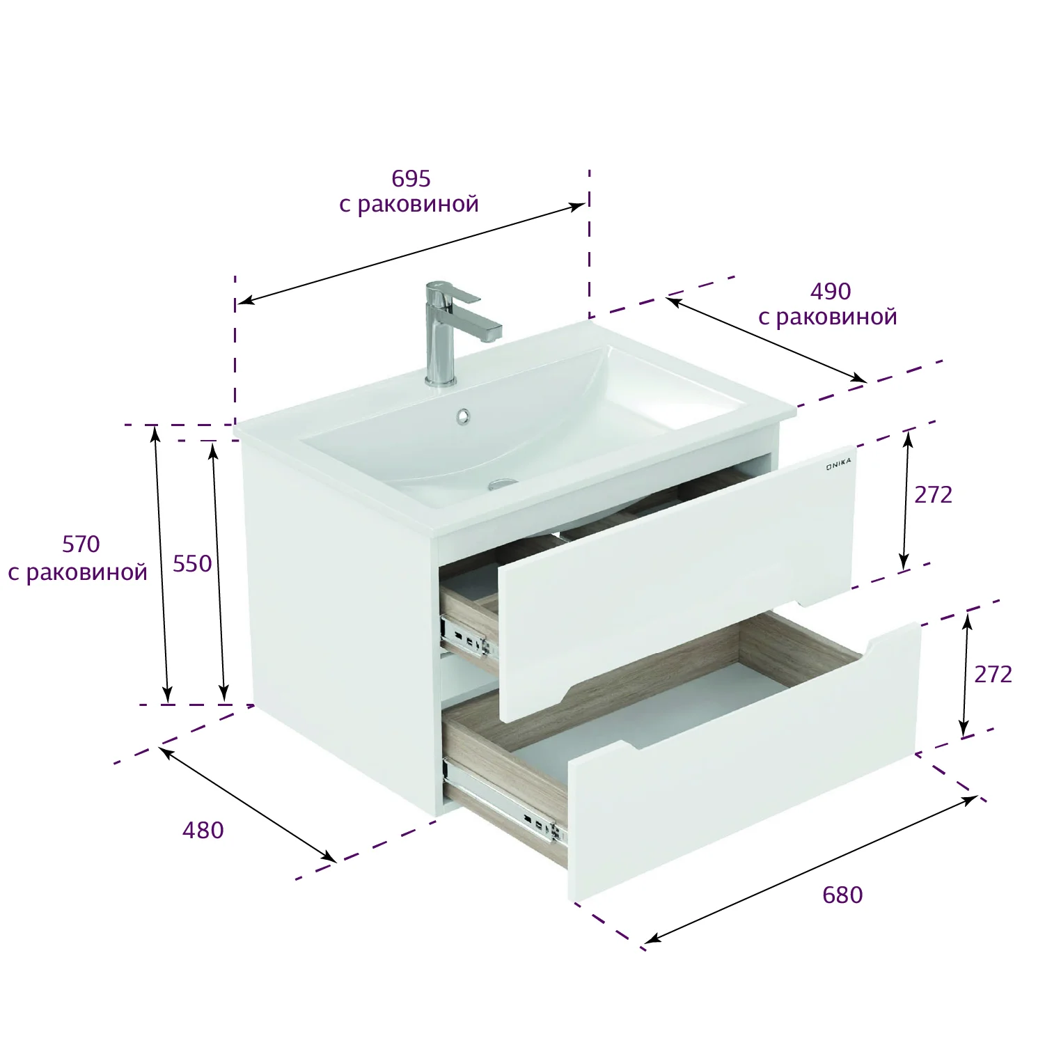 Подвесная тумба под раковину Onika Айленд 70 сочетает в себе стильный минималистичный дизайн, белую глянцевую поверхность и высочайшее качество исполнения.
