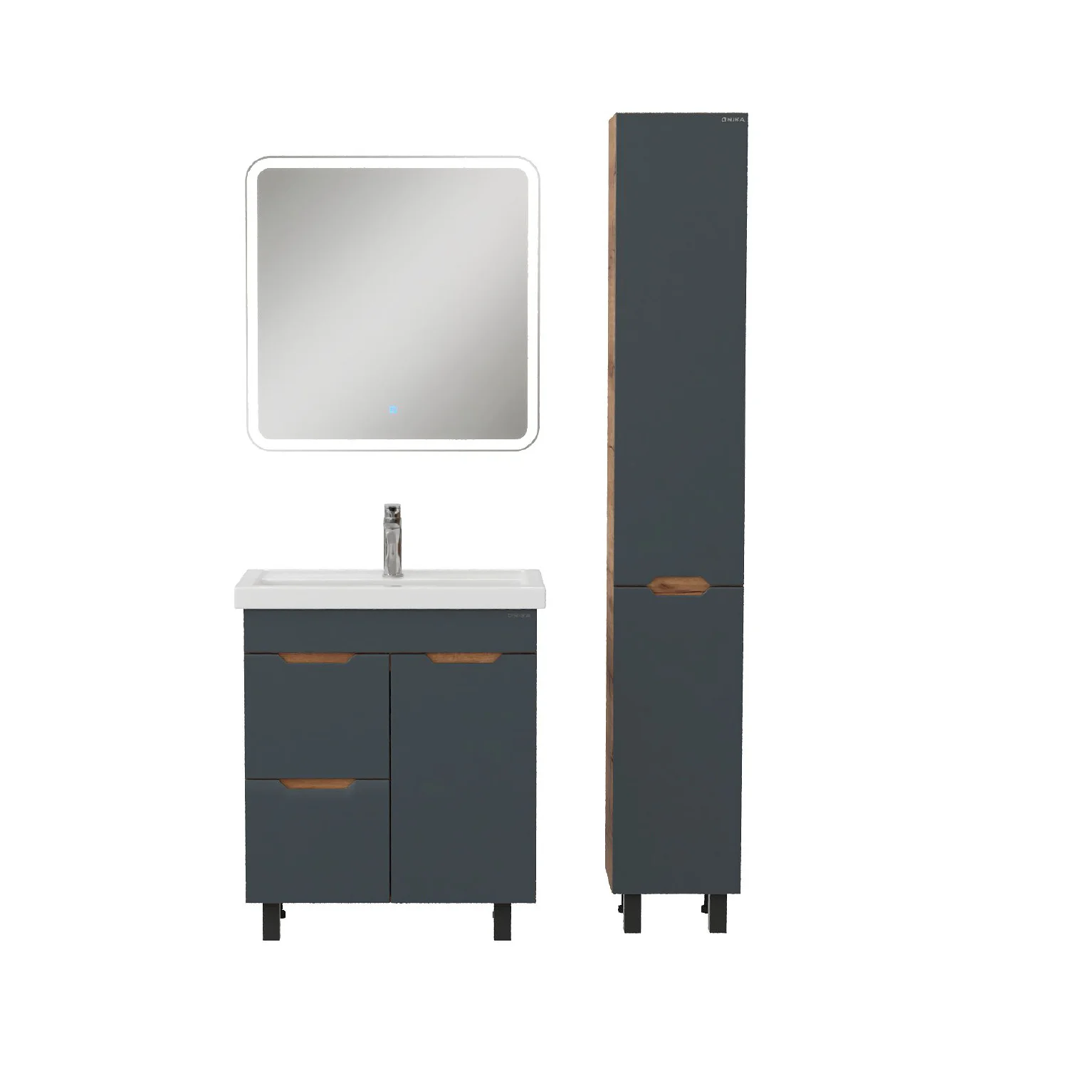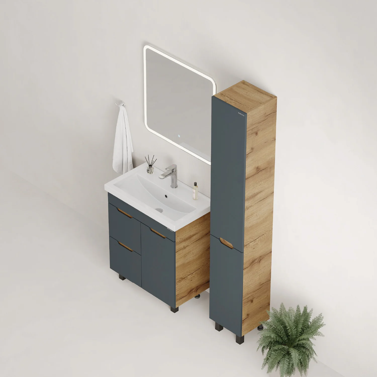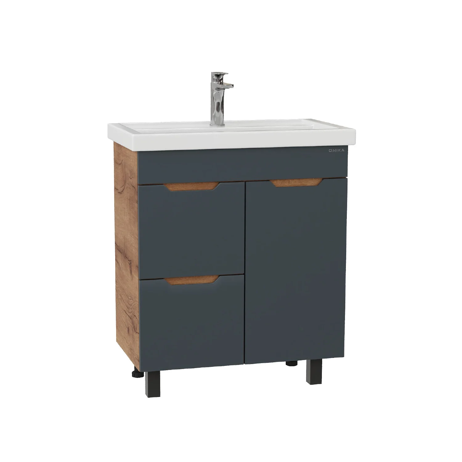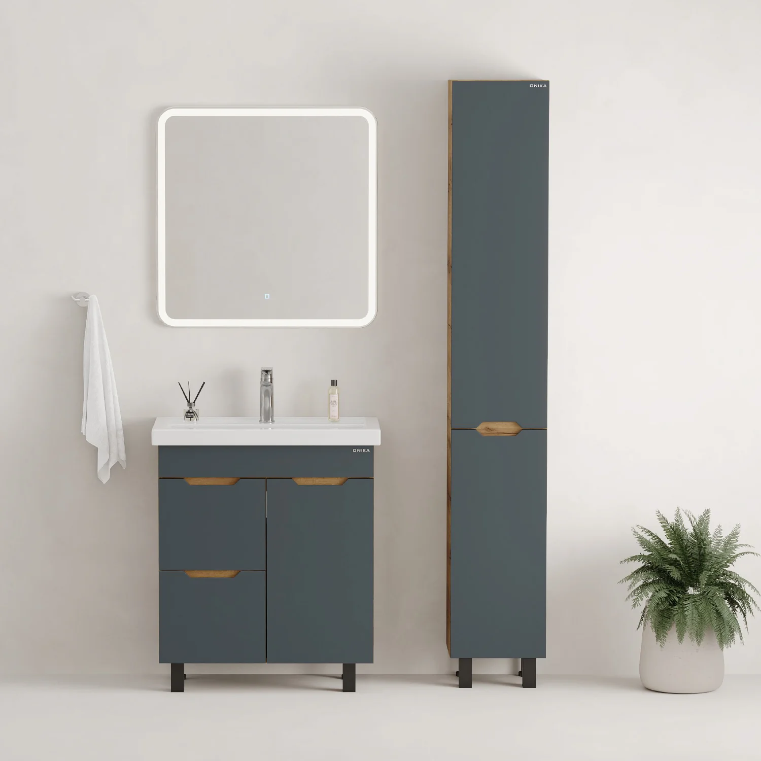 Тумба впишется в любой интерьер благодаря трендовому сочетанию матового графита и золотого дуба, а также поможет эффективно организовать пространство, что особенно важно в небольших ванных комнатах.