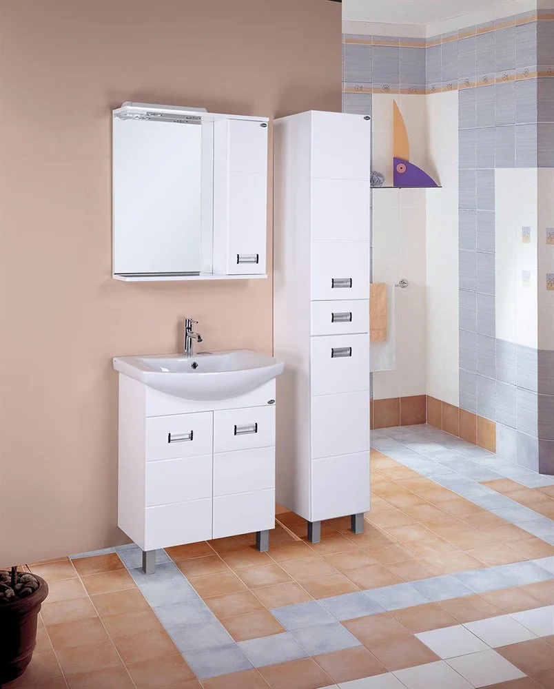 Глянцевый белый цвет фасада, ненавязчивая горизонтальная фрезеровка, врезные хромированные ручки и аккуратная лаконичность - все это позволяет коллекции Балтика стать центральным звеном интерьера ванной комнаты.