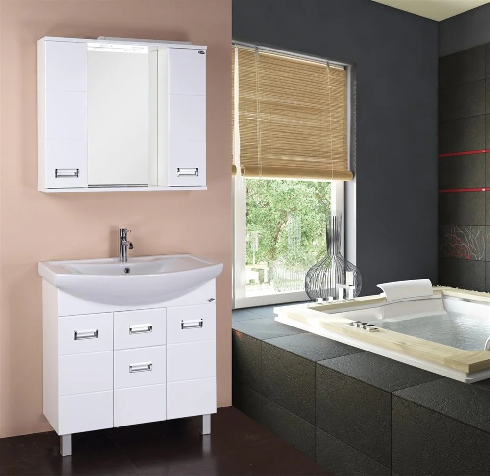 Глянцевый белый цвет фасада, ненавязчивая горизонтальная фрезеровка, врезные хромированные ручки и аккуратная лаконичность - все это позволяет коллекции Балтика стать центральным звеном интерьера ванной комнаты.