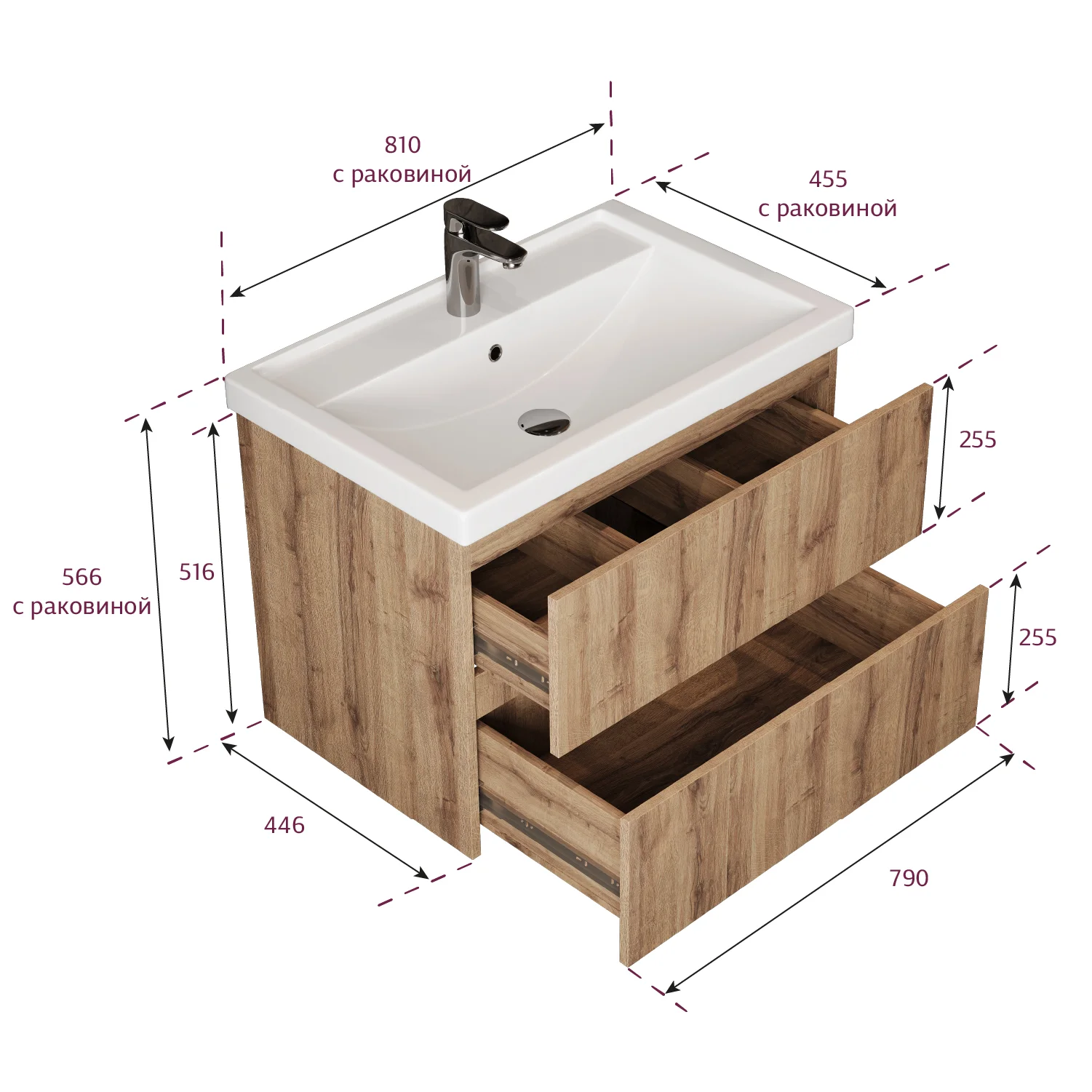 Элегантная подвесная тумба для ванной комнаты Onika Дарон 80 в оттенке дуб крафт золотой станет гармоничным акцентом современного интерьера.