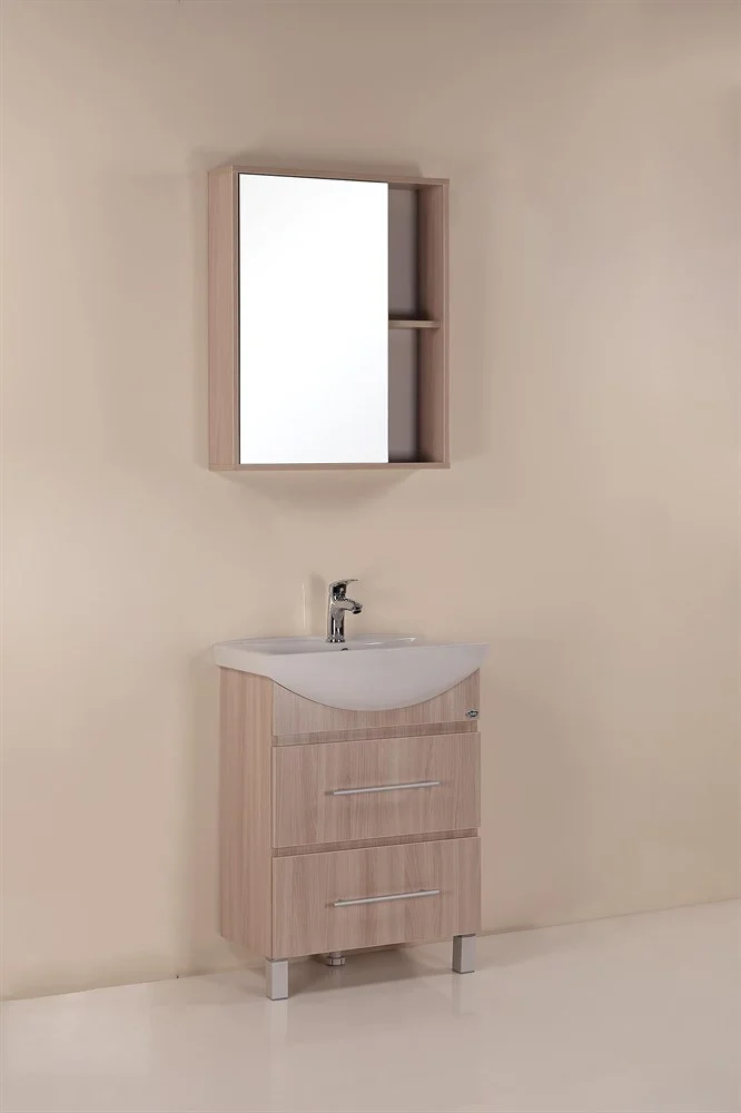 Тумба выполнена из ЛДСП, устойчивой к механическим воздействиям, перепадам температур и высокой влажности.