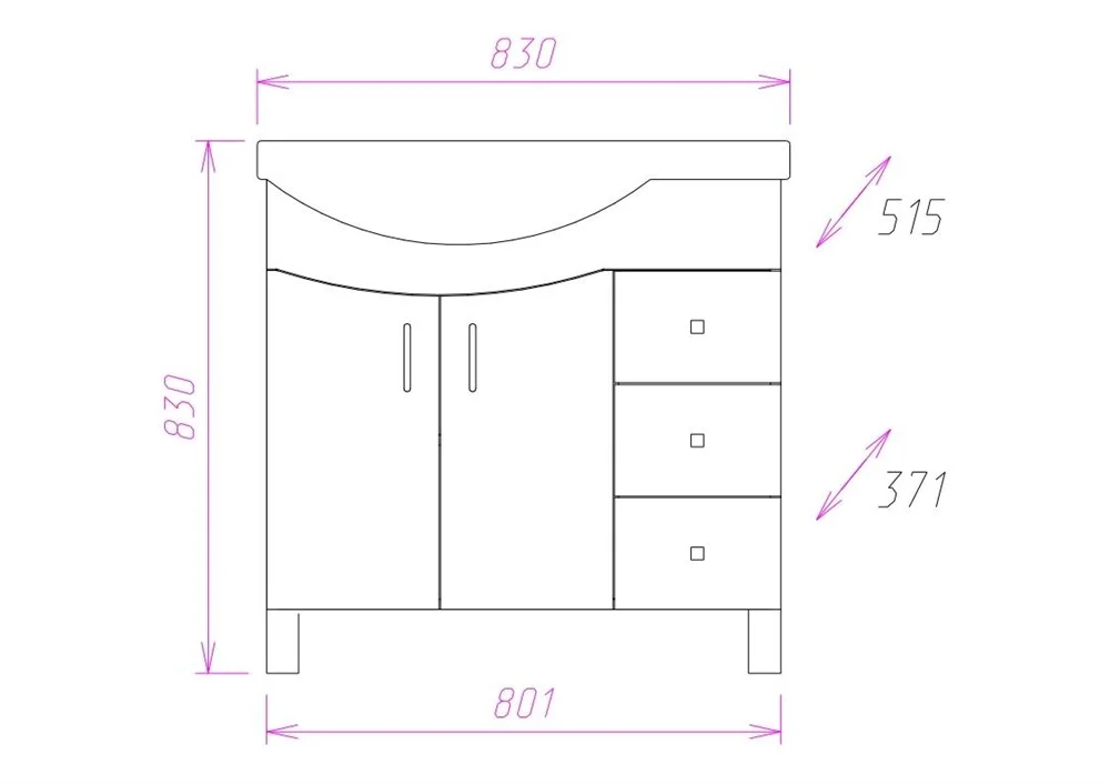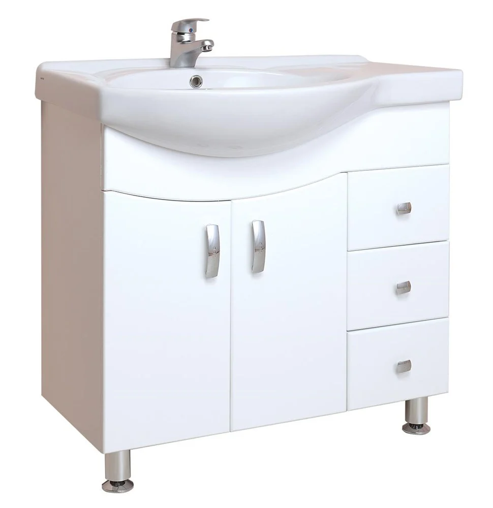 В тумбе Onika ЭЛЬБРУС 82.10 белоснежный глянец фасада подчеркивается оригинальной хромированной фурнитурой и сложной изысканной геометрией линий.