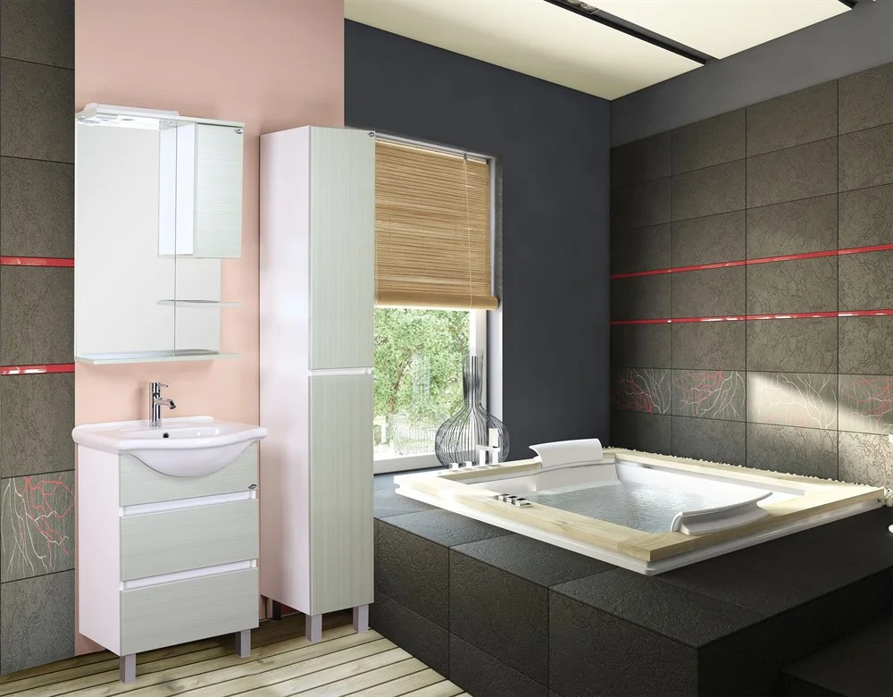 Корпус тумбы выполнен из ЛДСП, фасад - из МДФ в пленке, устойчивых к механическим воздействиям, перепадам температур и высокой влажности.