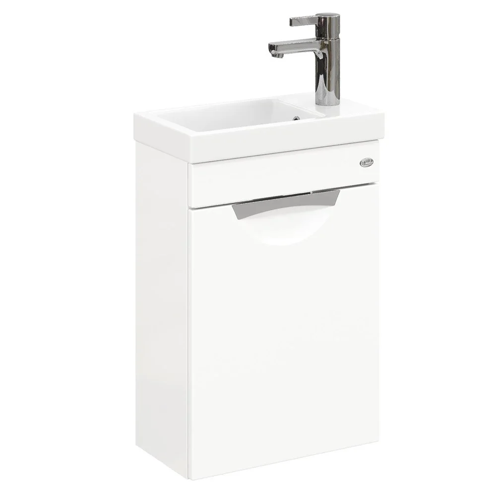 Главные особенности - это белая глянцевая поверхность, миниатюрные габариты, удобная врезная хромированная ручка на дверце с системой плавного закрывания, за которой да место для размещения необходимых мелочей.