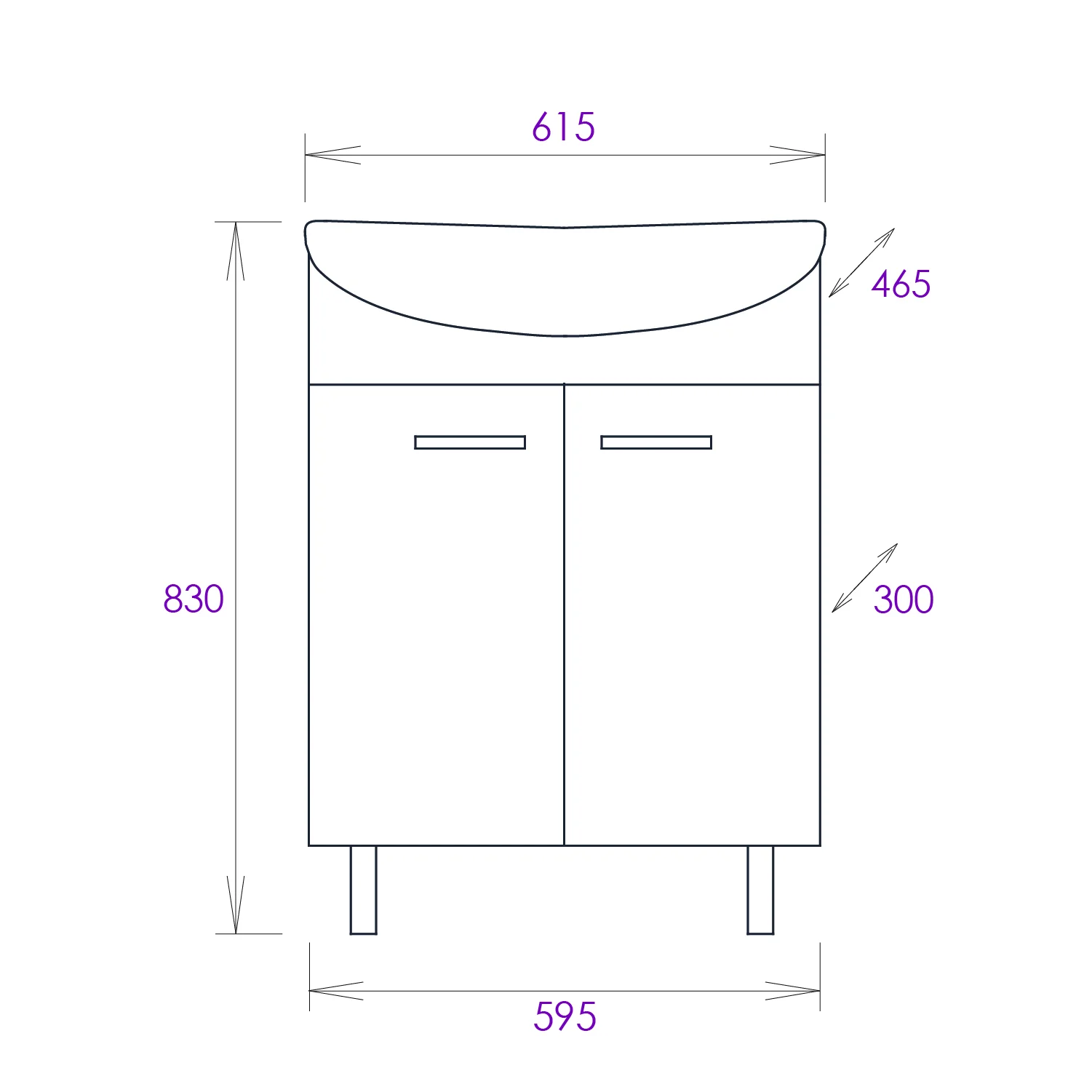 Размеры тумбы без учета раковины и ножек: 58х29х68 см.