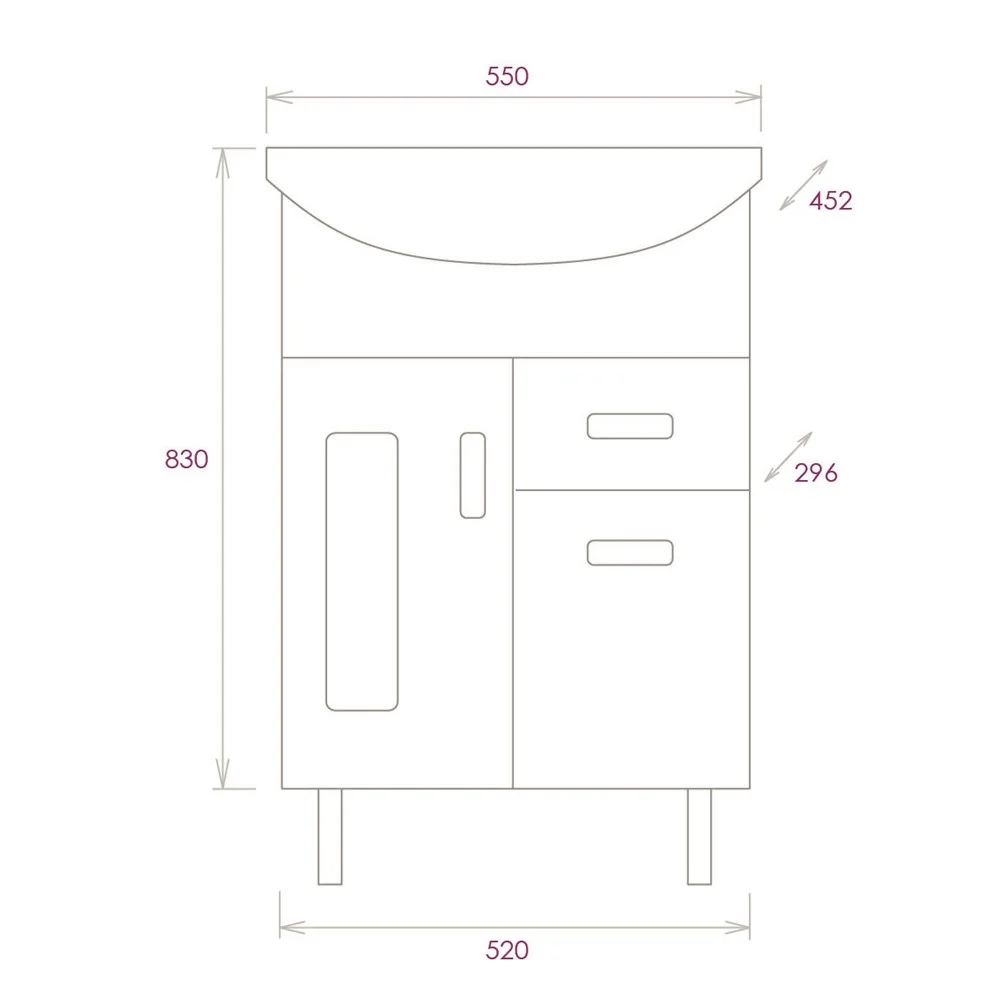 Корпус тумбы выполнен из ЛДСП, фасад - из МДФ в пленке, устойчивых к механическим воздействиям, перепадам температур и высокой влажности.