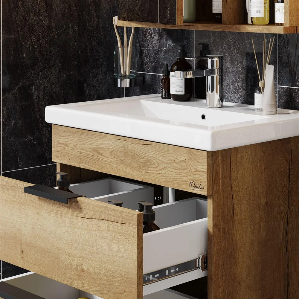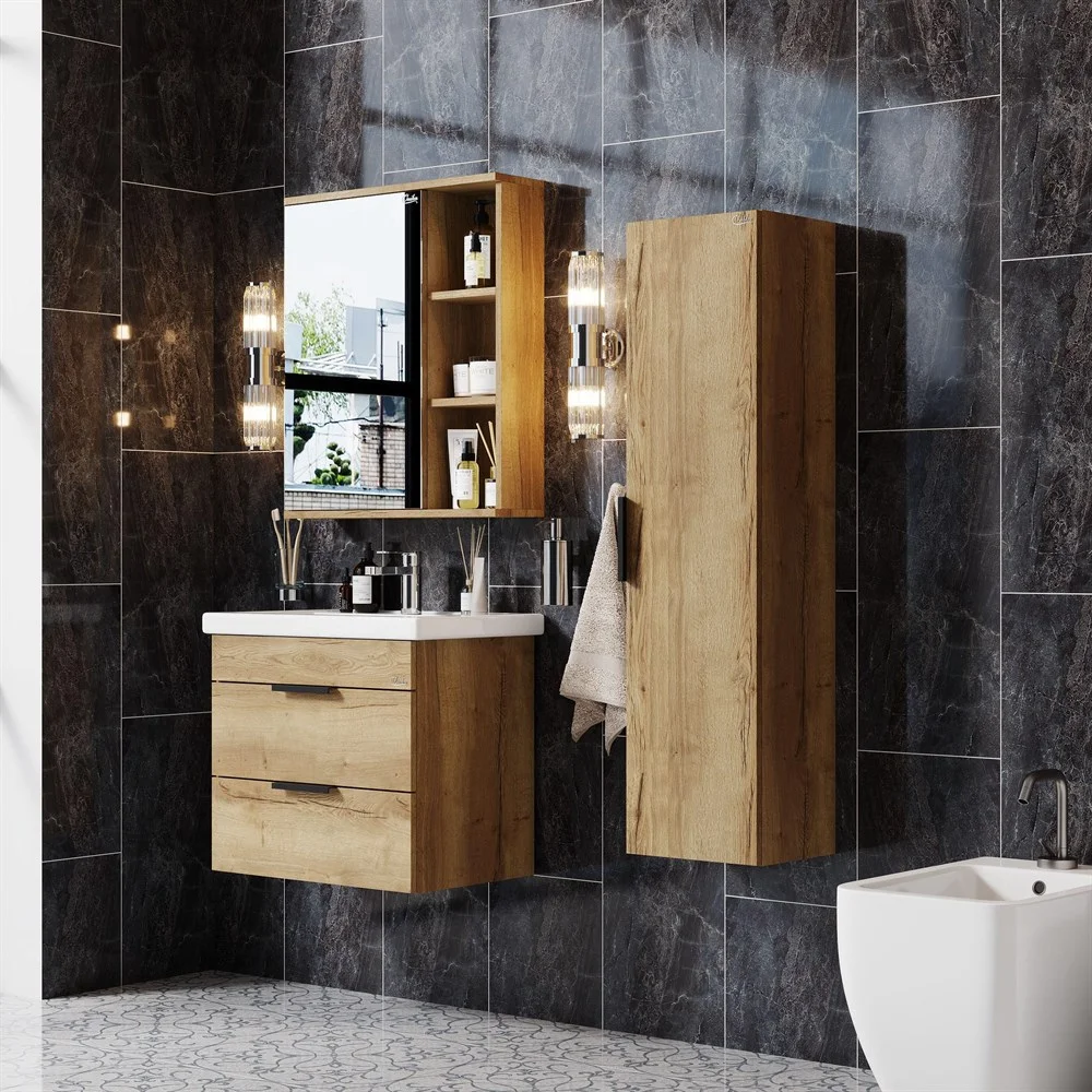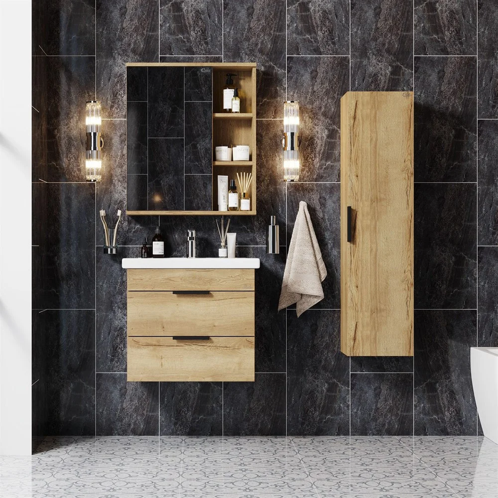 подвесной тумба Onika ЛЕГРАН 60.13 - это сочетание насыщенного древесного декора и благородства металла: роскошная текстура и натуральный цвет дуба дают теплоту, а матовые металлические ручки добавляют урбанизма и солидности.