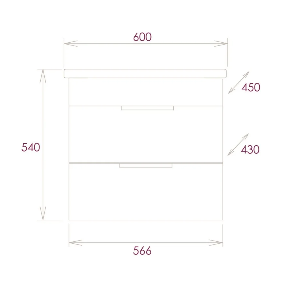 Тумба имеет два ящика, снабженные системой плавного закрывания. Нижний предназначен для больших предметов, а верхний, имеющий удобную систему организации пространства, - для мелких аксессуаров.