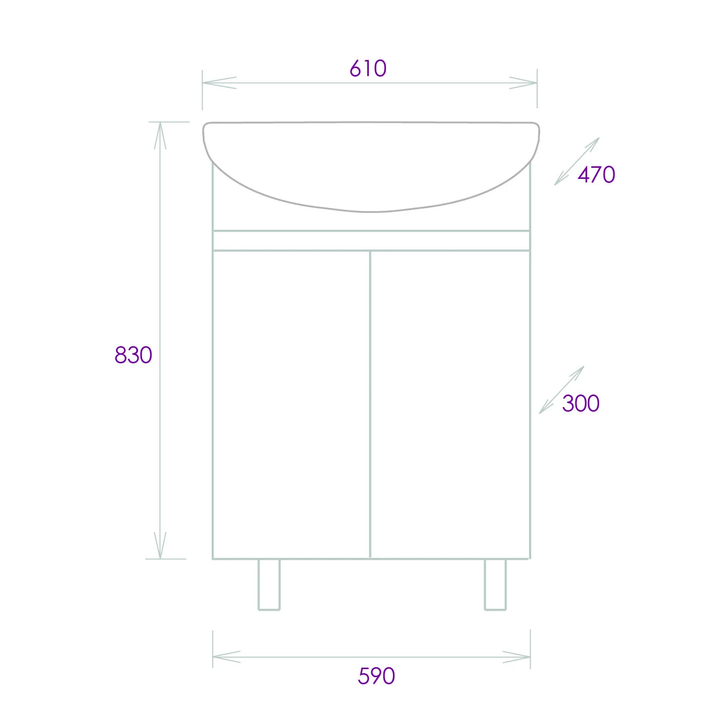 Размеры тумбы без учета раковины и ножек 59х30х68см.