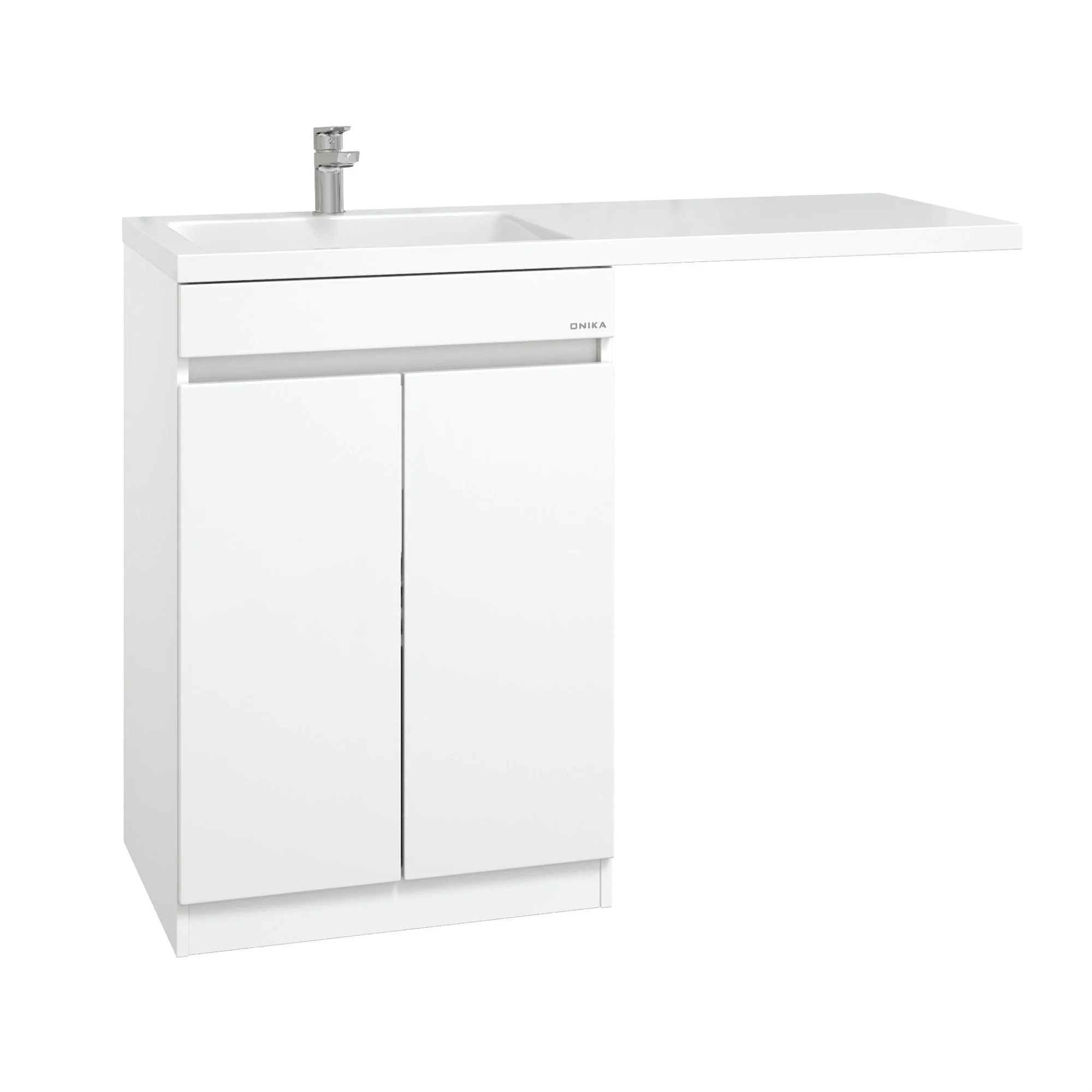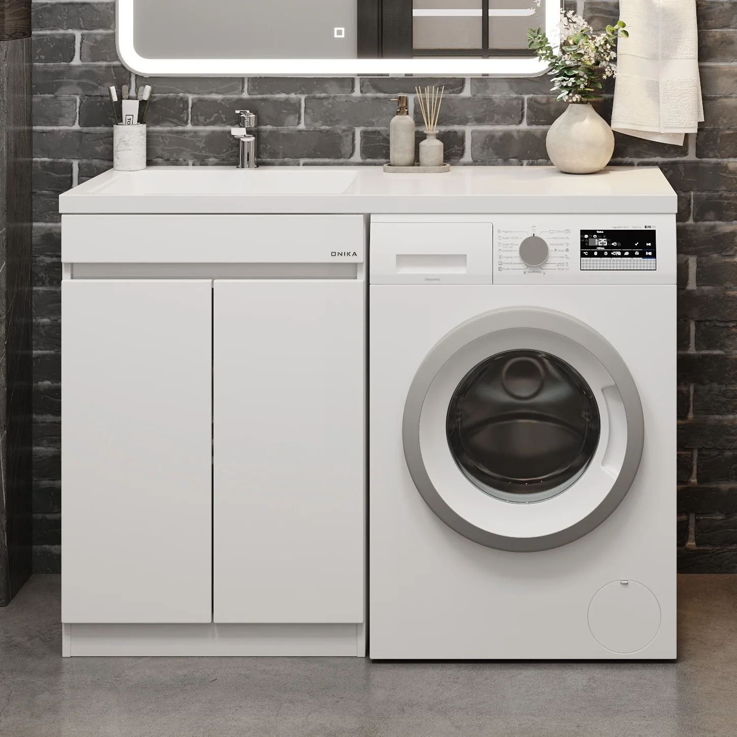 Напольная тумба Onika Милтон Нова 48 станет отличным решением для совмещения со стиральной машиной.