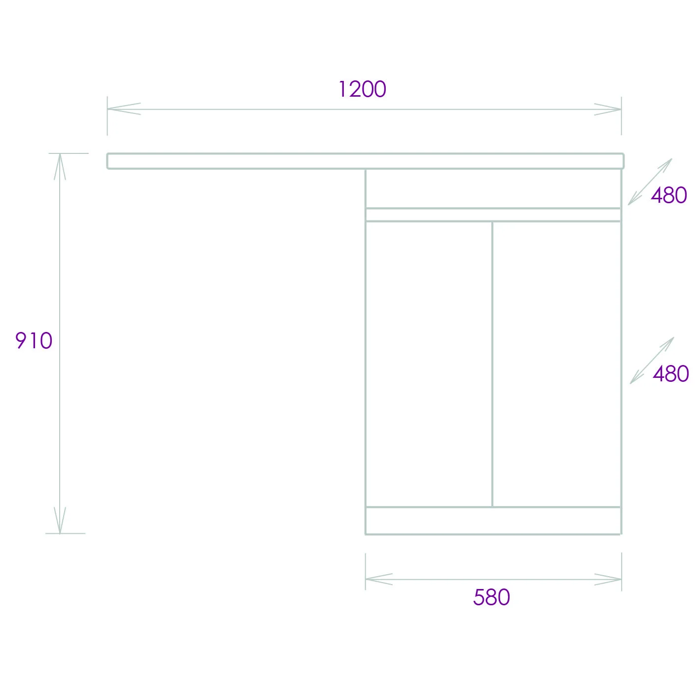Размеры тумбы без учета раковины 58х48х87 см.