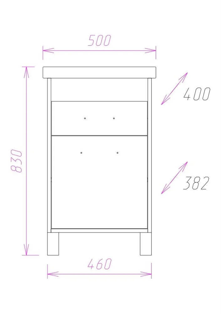 Тумба имеет вместительный выдвижной ящик для хранения бытовых принадлежностей и предметов личной гигиены, а так же большое пространство для хранения за распашной дверцей.