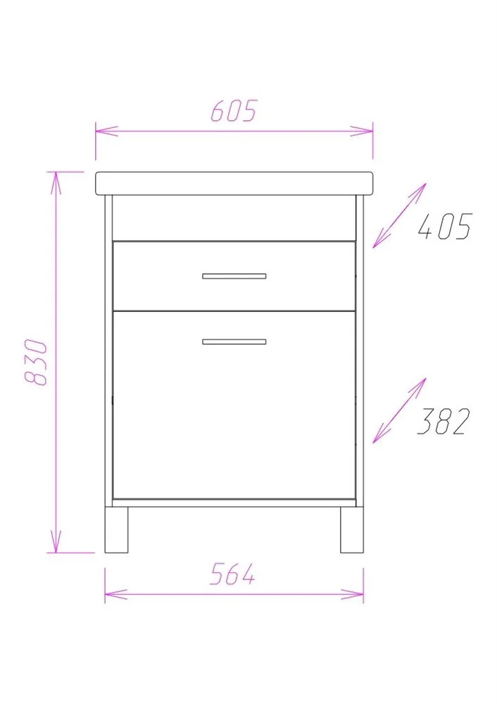 Тумба выполнена из ЛДСП, устойчивой к механическим воздействиям, перепадам температур и высокой влажности.