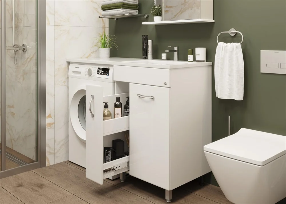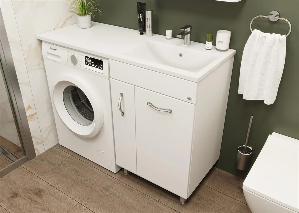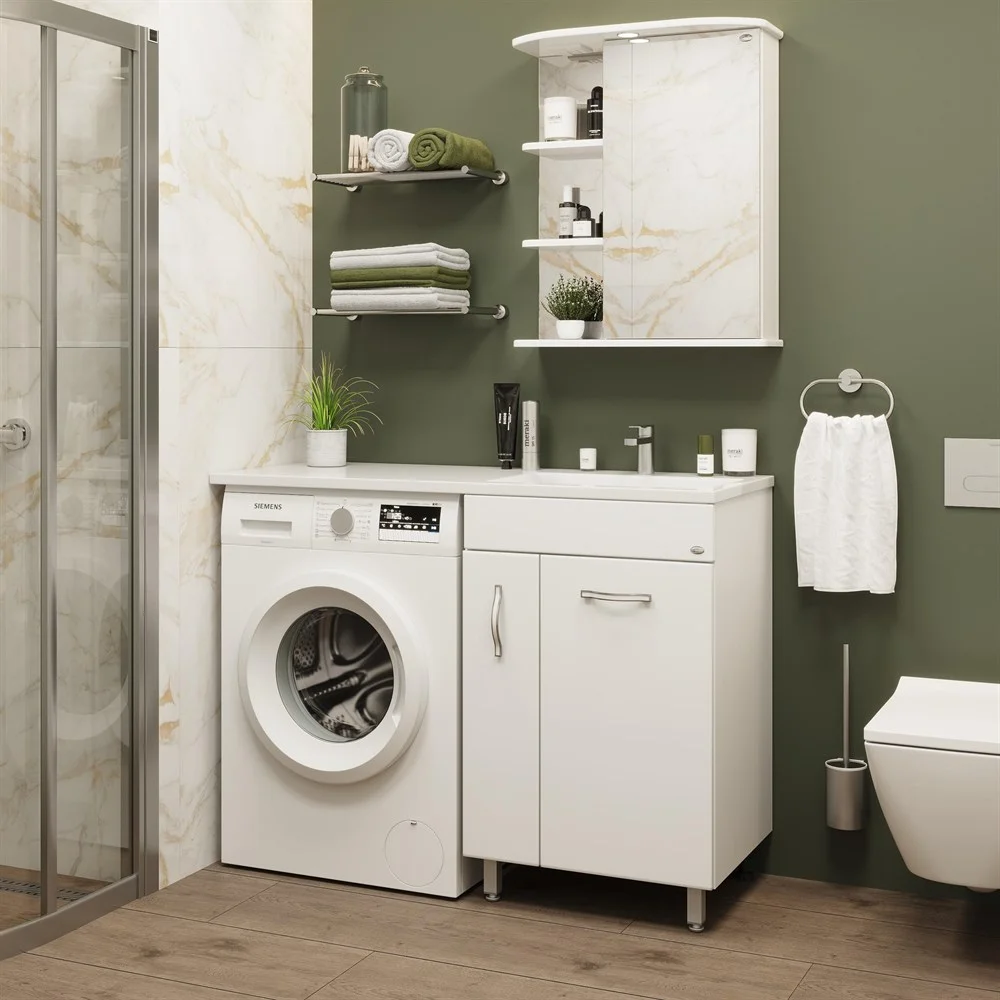 Напольная тумба Onika НАВИ 60.12 идеально подходит для небольших санузлов и станет прекрасным решением для совмещения со стиральной машиной.