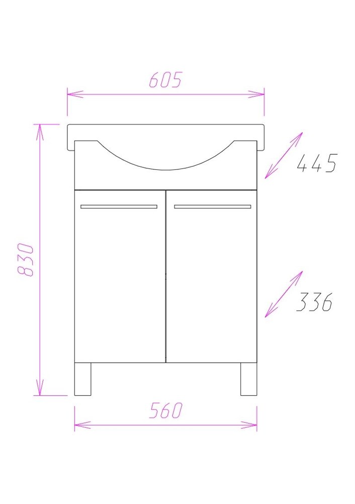 Одно большое отделение с двумя распашными дверцами, оснащенными системой плавного закрывания, пространство внутри которого разделено полкой, позволит вместить все необходимые в ванной мелочи.