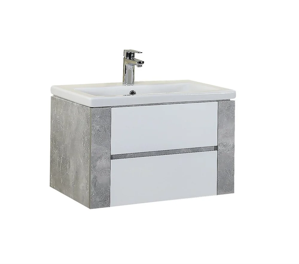 подвесной тумба СТОУН 70.13 отражает актуальные тенденции в дизайне мебели для ванной комнаты: минимализм и геометрия фасадов, чёткость и лаконичность форм, отсутствие декора и стильный цвет выбеленного бетонного покрытия.