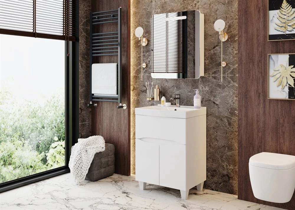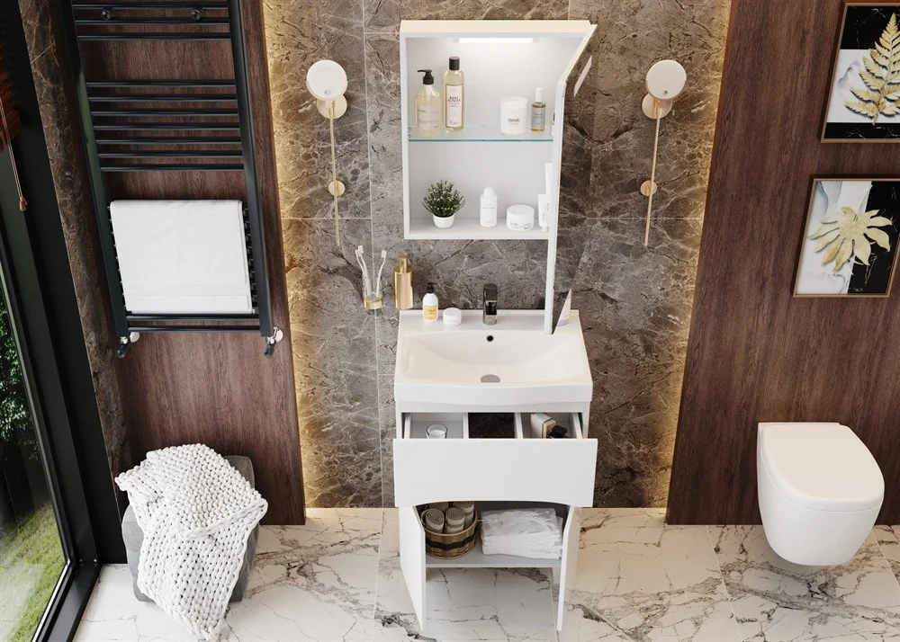 Яркая эстетика строгих линий и блестящий белый глянец - тумба Onika СТРИМ 60.12 создана, чтобы наполнить пространство воздухом и сделать особенный свободный интерьер комнаты.