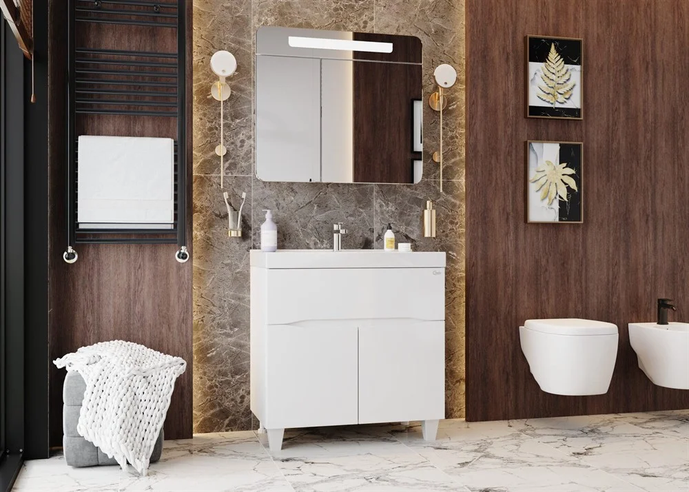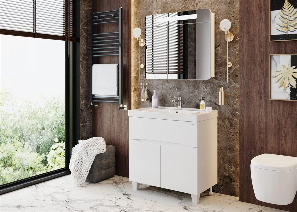Яркая эстетика строгих линий и блестящий белый глянец - тумба Onika СТРИМ 80.12 создана, чтобы наполнить пространство воздухом и сделать особенный свободный интерьер комнаты.