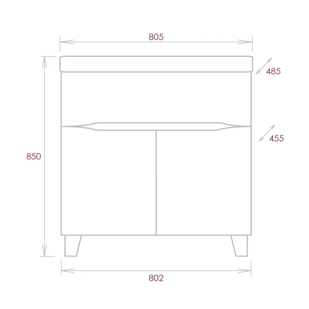 Оснащение тумбы позволяет компактно разместить бытовые принадлежности: большой выдвижной ящик идеально подойдет для хранения небольших вещей, а две распашные дверцы скрывают место для более крупных предметов.