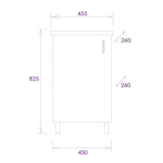 Размеры тумбы без учета раковины и ножек 45x26x68 cм.