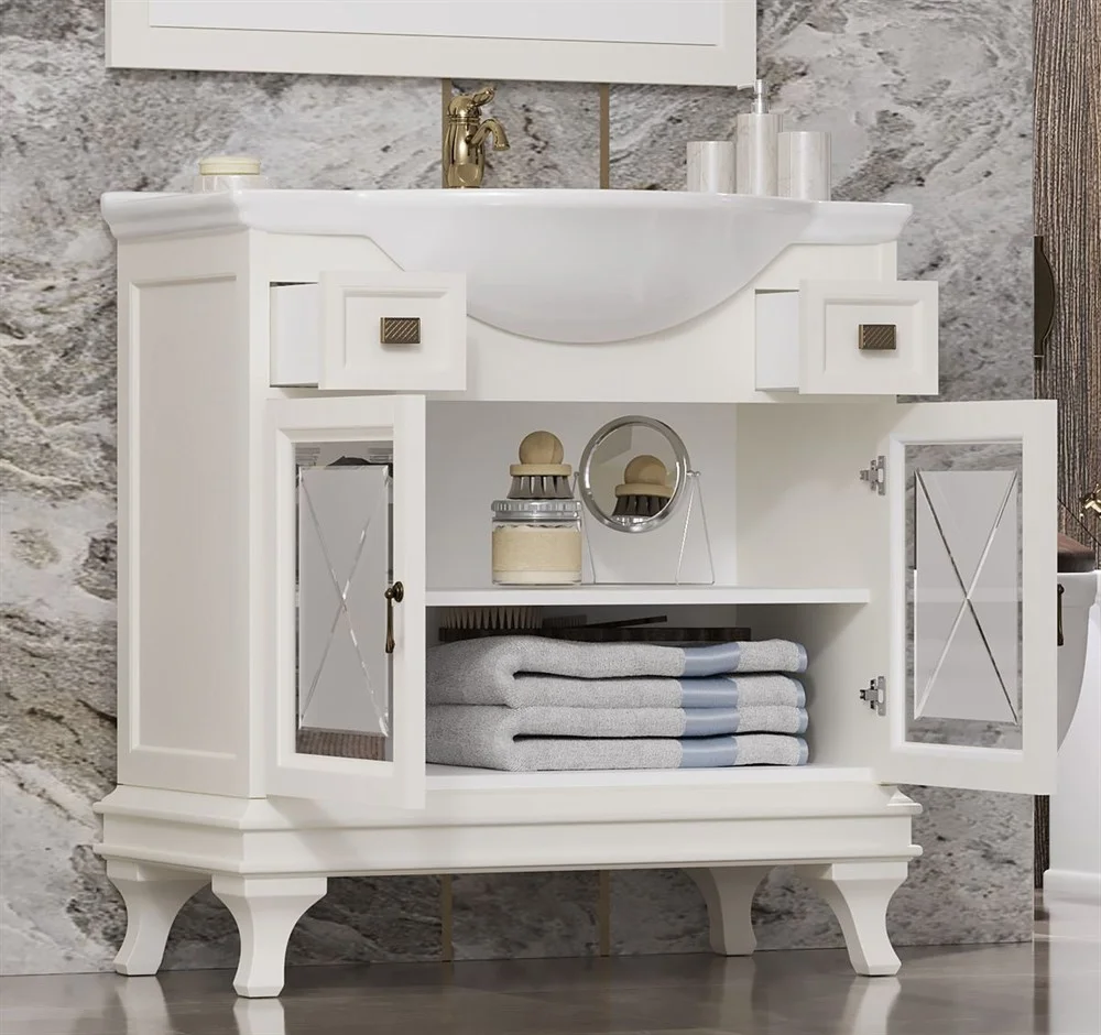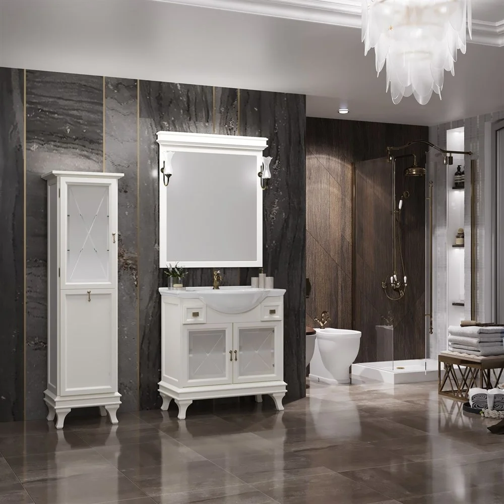 Коллекция Борджи сочетает в себе элементы классического итальянского стиля. Особый шарм мебели из коллекции Борджи добавляет неповторимый цвет отделки, а также стеклянные витражи с уникальной гравировкой. Глубокая и функциональная керамическая раковина чешского производства дополняет комплектацию мебели из коллекции Борджи. Оригинальный и элегантный пенал из коллекции мебели для ванной комнаты Борджи укомплектован бельевой корзиной. Пенал Борджи возможно приобрести без корзины, в такой комплектации дверь у пенала будет распашная.