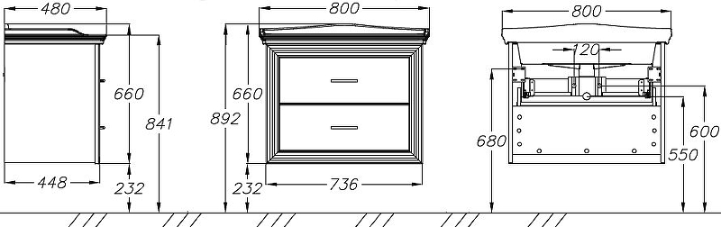 Фасады изготавливаются из высококачественного МДФ с глянцевым покрытием — бежевый оттенок для обрамления с золотой патиной, белый оттенок для обрамления с серебристой патиной. Обрамления для ящиков и зеркала выполнены из натурального массива бука в сочетании с золотой и серебряной патиной.
