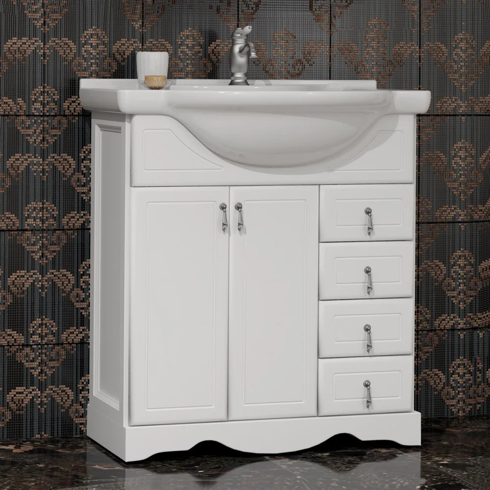 Уникальная коллекция Клио, одна из старейших коллекций в производственном ряду бренда OPADIRIS. Фасадные части коллекции Клио изготавливаются из массива бука. Состоит из двух распашных дверец (в левой части тумбы) и четырех выдвижных ящиков в правой части тумбы. Мебель для ванной комнаты из коллекции Клио комплектуется керамической раковиной.