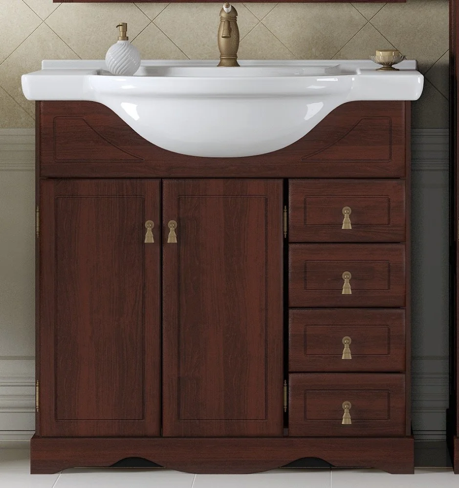 Уникальная коллекция Клио, одна из старейших коллекций в производственном ряду бренда OPADIRIS. Фасадные части коллекции Клио изготавливаются из массива бука. Состоит из двух распашных дверец (в левой части тумбы) и четырех выдвижных ящиков в правой части тумбы. Мебель для ванной комнаты из коллекции Клио комплектуется керамической раковиной.