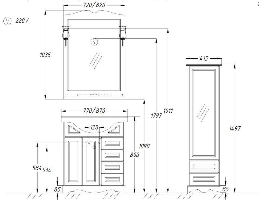 Уникальная коллекция Клио, одна из старейших коллекций в производственном ряду бренда OPADIRIS. Фасадные части коллекции Клио изготавливаются из массива бука. Состоит из двух распашных дверец (в левой части тумбы) и четырех выдвижных ящиков в правой части тумбы. Мебель для ванной комнаты из коллекции Клио комплектуется керамической раковиной.