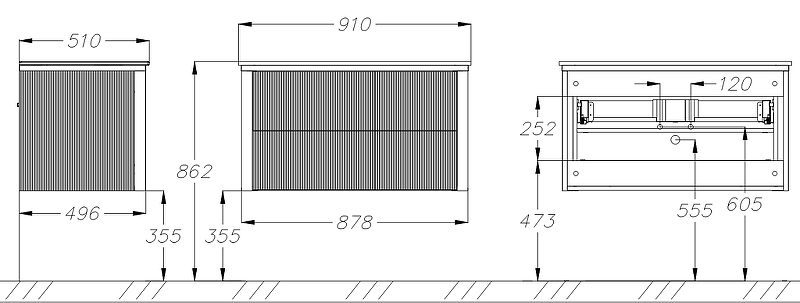 Рельефные фасады тумбы с технологией открывания push-to-open покрыты влагостойкой эмалью серого цвета.