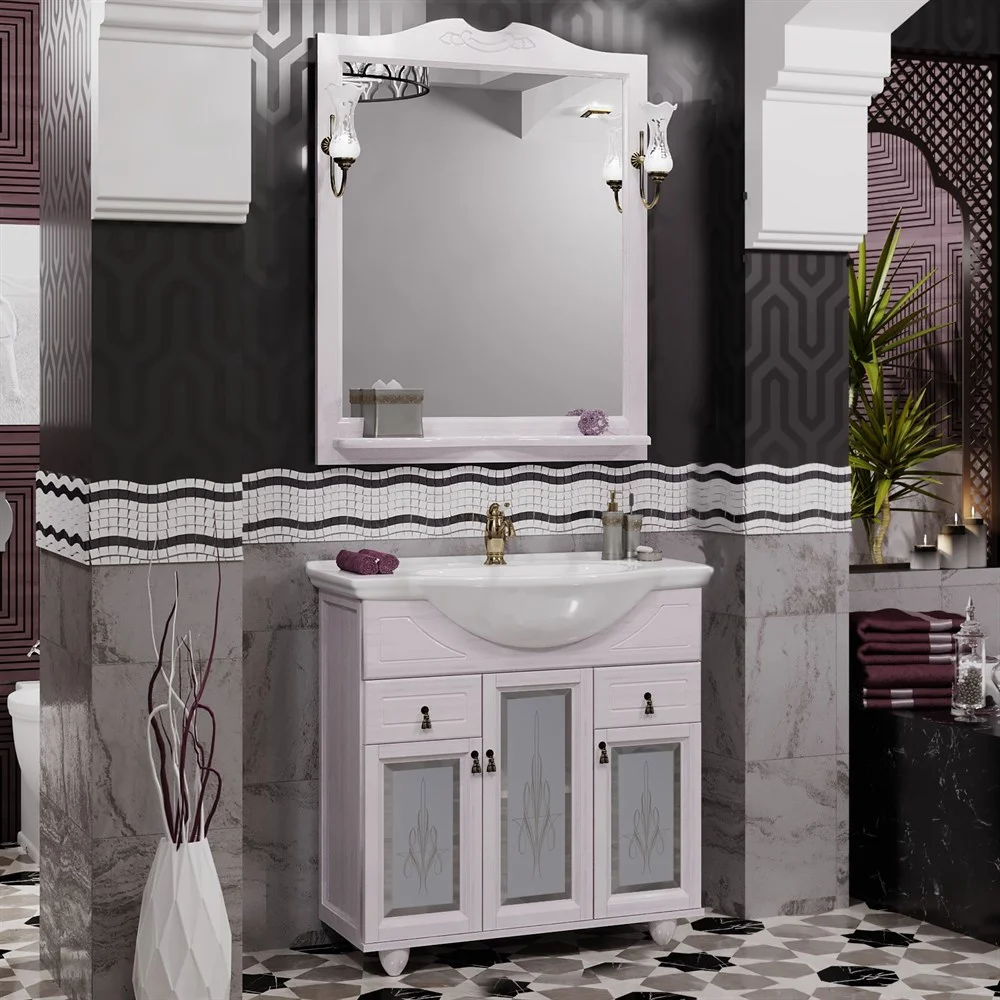 Коллекция мебели для ванной комнаты Тибет представляет собой великолепное сочетание традиционной классики и современного взгляда на ванную комнату. Тумба Тибет отличается своим многообразием в решениях с фасадными дверцами. Комплекты мебели для ванной комнаты коллекции Тибет предлагаются с фасадами, украшенными дверцами с художественным стеклом или декоративной решеткой.