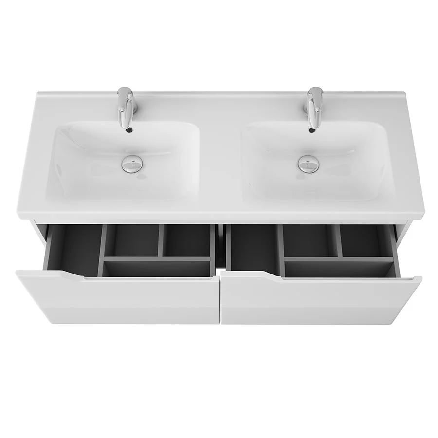 Тумба под раковину OWL 1975 Hella 120, 2 чаши, белый лак OW24.07.00