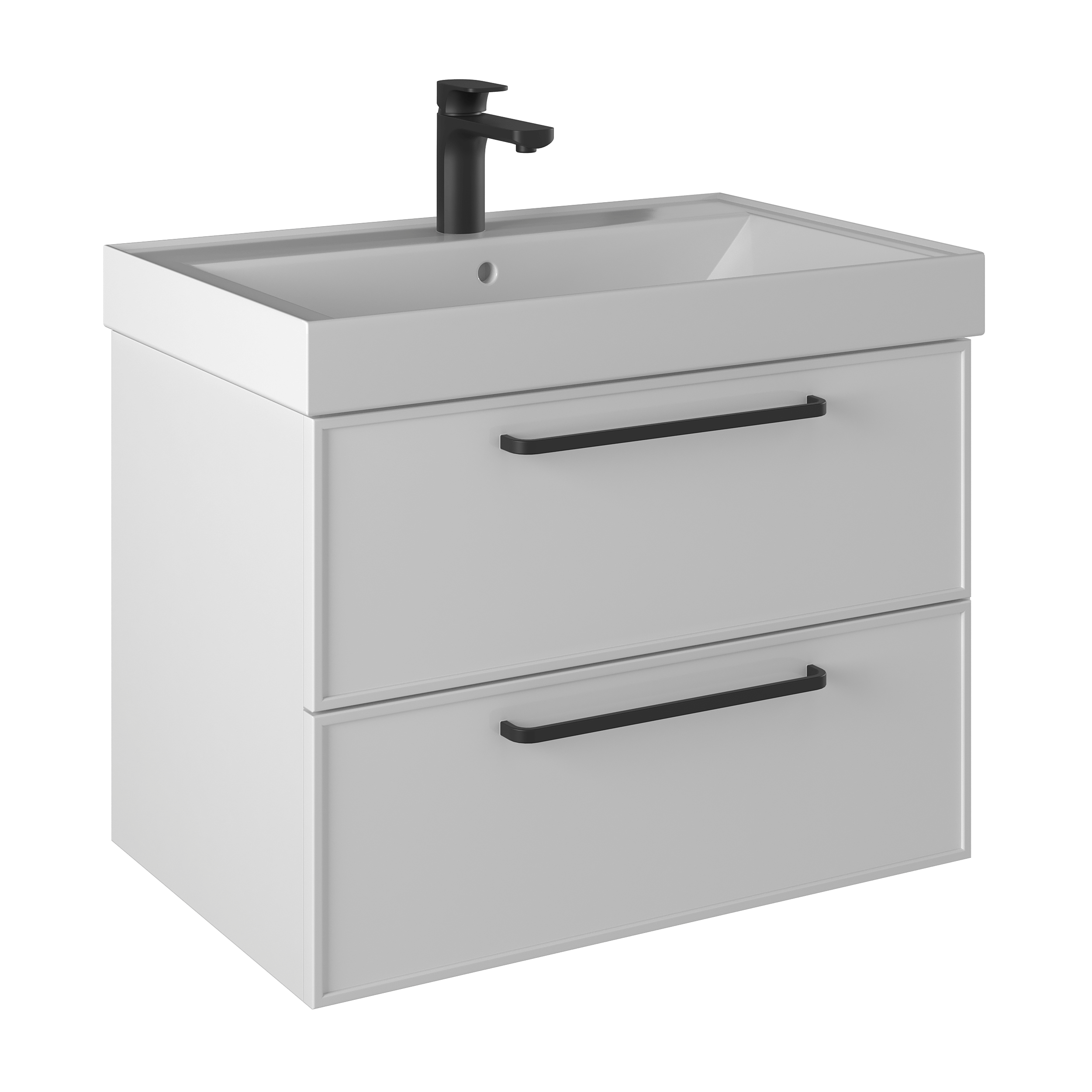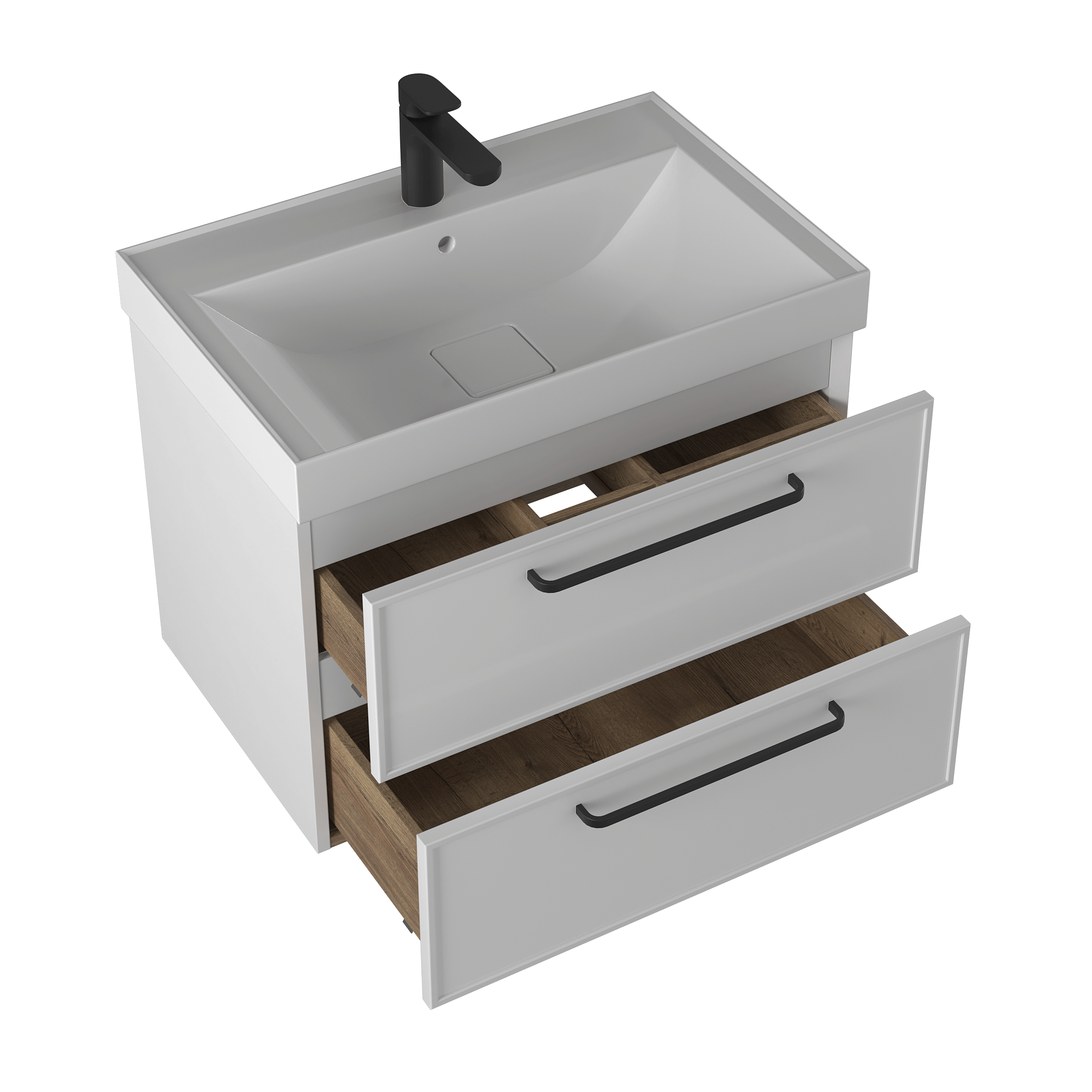 Тумба под раковину PRATO Кватро 70 см 246 03-18070-19 00 БЕЛ от бренда BRIZ идеальное решение для вашей ванной комнаты. Она выполнена в современном дизайне с прямоугольной формой и универсальной ориентацией. Тумба имеет размеры: длина 447 мм, ширина 686 мм и высота 500 мм. Корпус и фасады изготовлены из прочного мдф, что обеспечивает долговечность. Подвесной монтаж позволяет экономить пространство, а фурнитура BLUM (Австрия) с механизмом доводчика обеспечивает легкость в использовании и длительный срок службы.