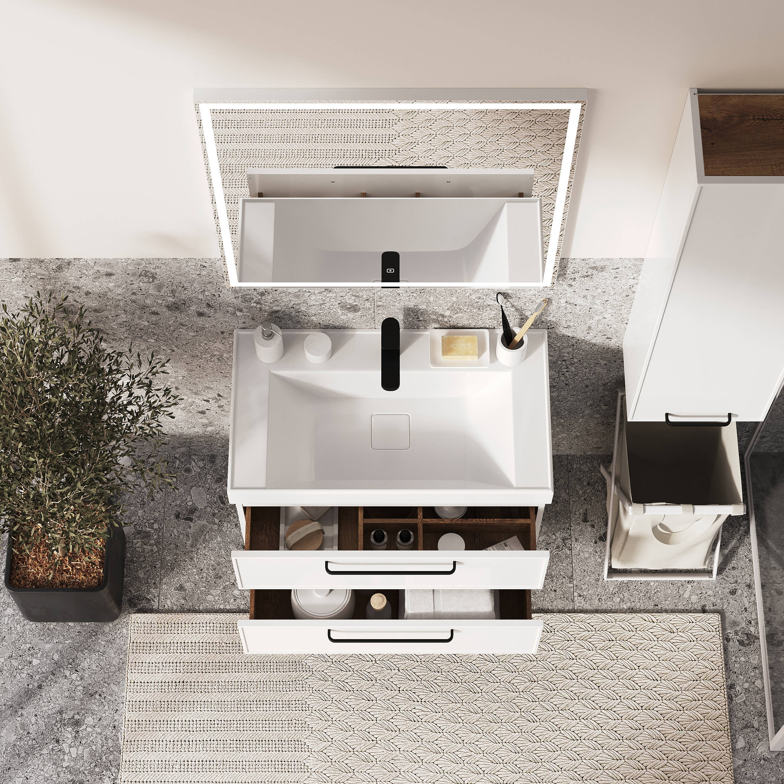 Мебель коллекции КВАТРО объединяет строгие линии фасадов, создавая утонченный облик вашей ванной комнаты.