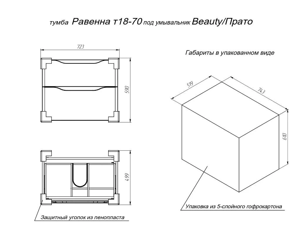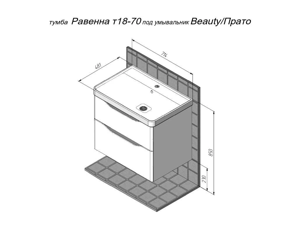 Тумба под раковину PRATO Пола 70 см 250 03-18070-20 00 БЕЛ, белый глянец