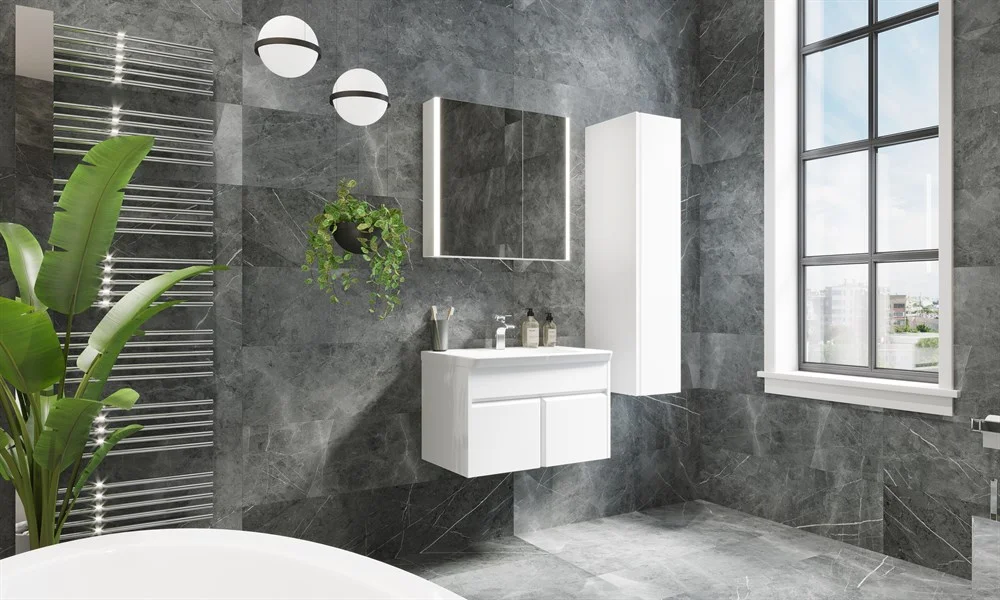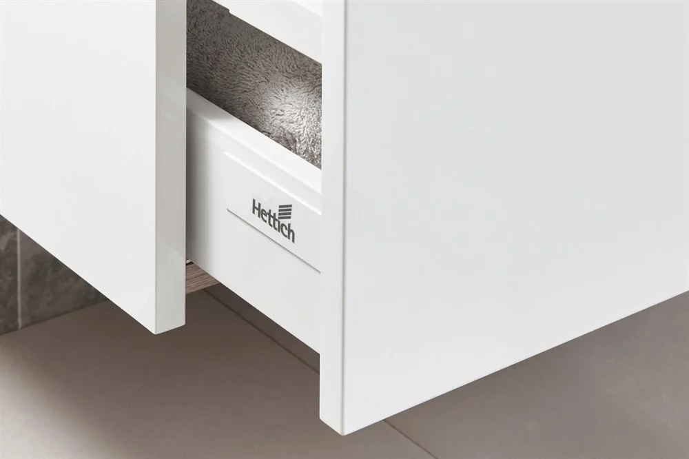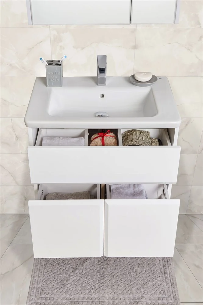Тумба для раковины Up в современном стиле от испанского бренда Roca, выполненная из влагостойкой высококачественной ЛДСП и МДФ, с ящиками полного выдвижения с системой push-to-open.
