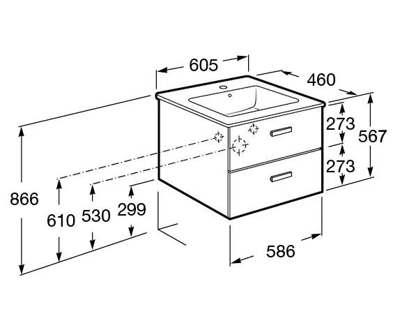 Тумба для раковины Victoria Nord в современном стиле от испанского бренда Roca, выполненная из влагостойкой высококачественной ЛДСП, с ящиками с доводчиками.
