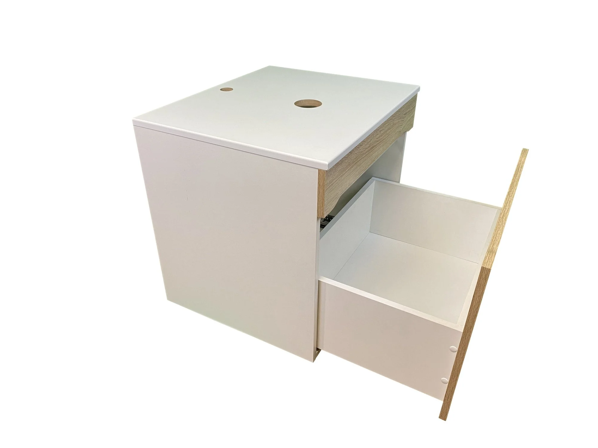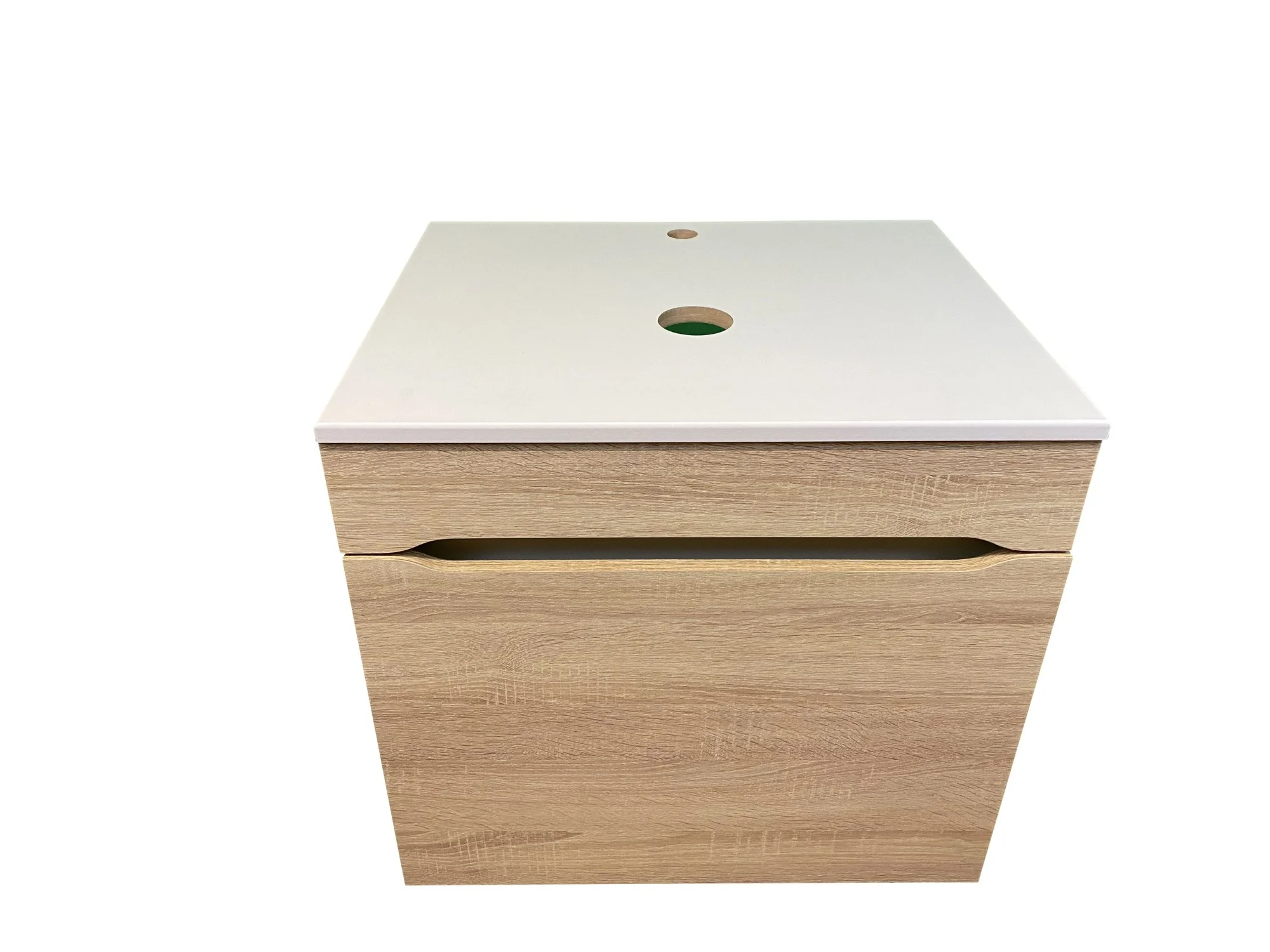 Тумба оснащена удобным ящиком, который позволяет хранить все необходимые ванные принадлежности под рукой. Вы легко разместите полотенца, косметику и средства гигиены, экономя место и поддерживая порядок. Подвесная конструкция и встроенный механизм плавного закрытия ящика обеспечивают комфортное использование и долгий срок службы.