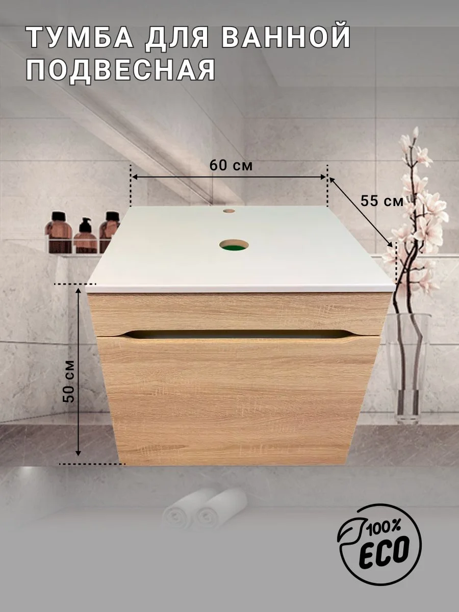 Эта тумба идеально сочетается с разнообразными раковинами и столешницами, позволяя вам создать уникальный и гармоничный интерьер. Столешница под раковину выполнена из высококачественных материалов, устойчива к механическим повреждениям и воздействию влаги, а также проста в уходе.