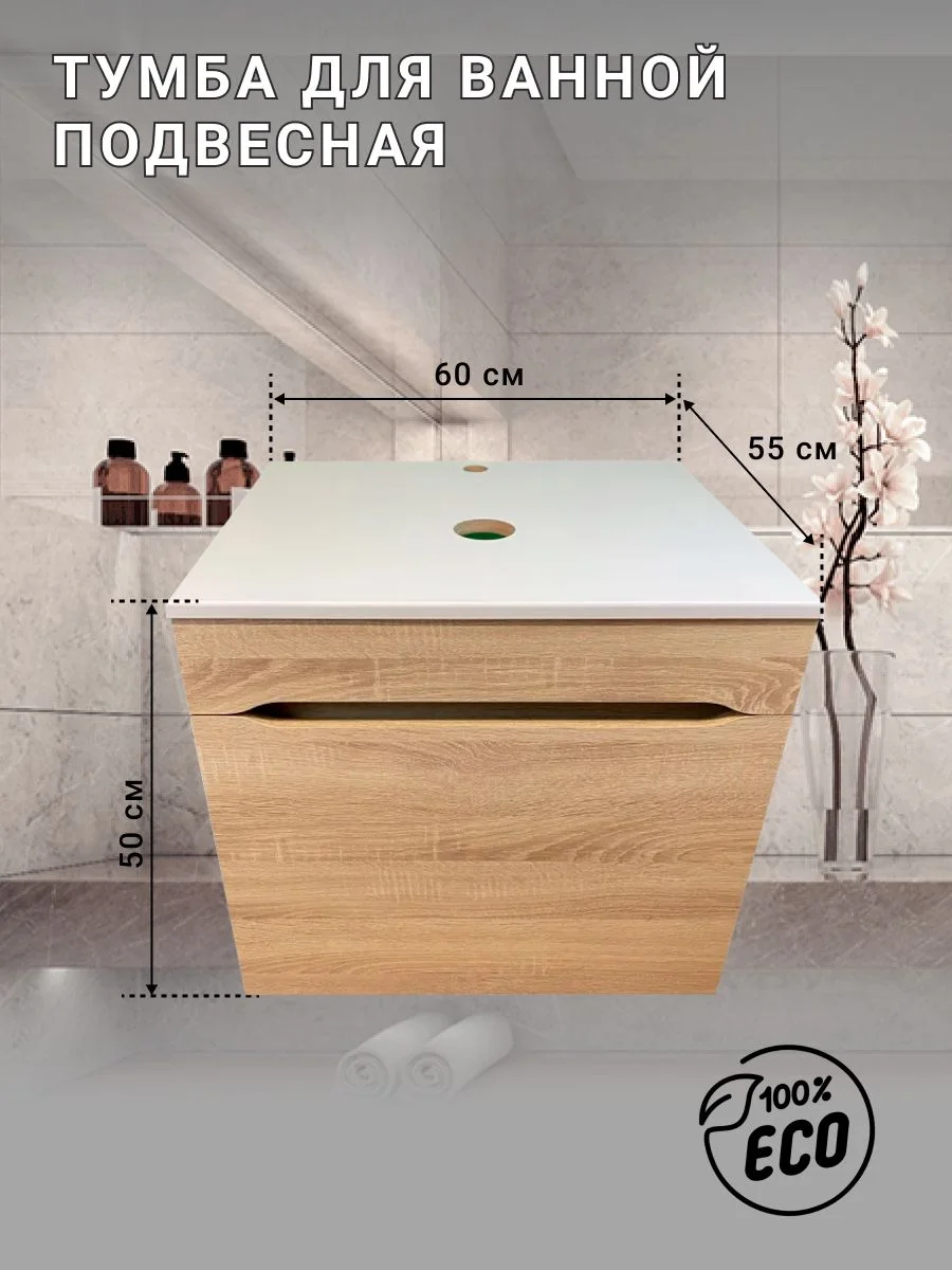 Подвесная конструкция тумбы делает уборку ванной комнаты более удобной и быстрой. Теперь нет необходимости перемещать мебель или переживать из-за труднодоступных мест—чистота вашей ванной обеспечена.