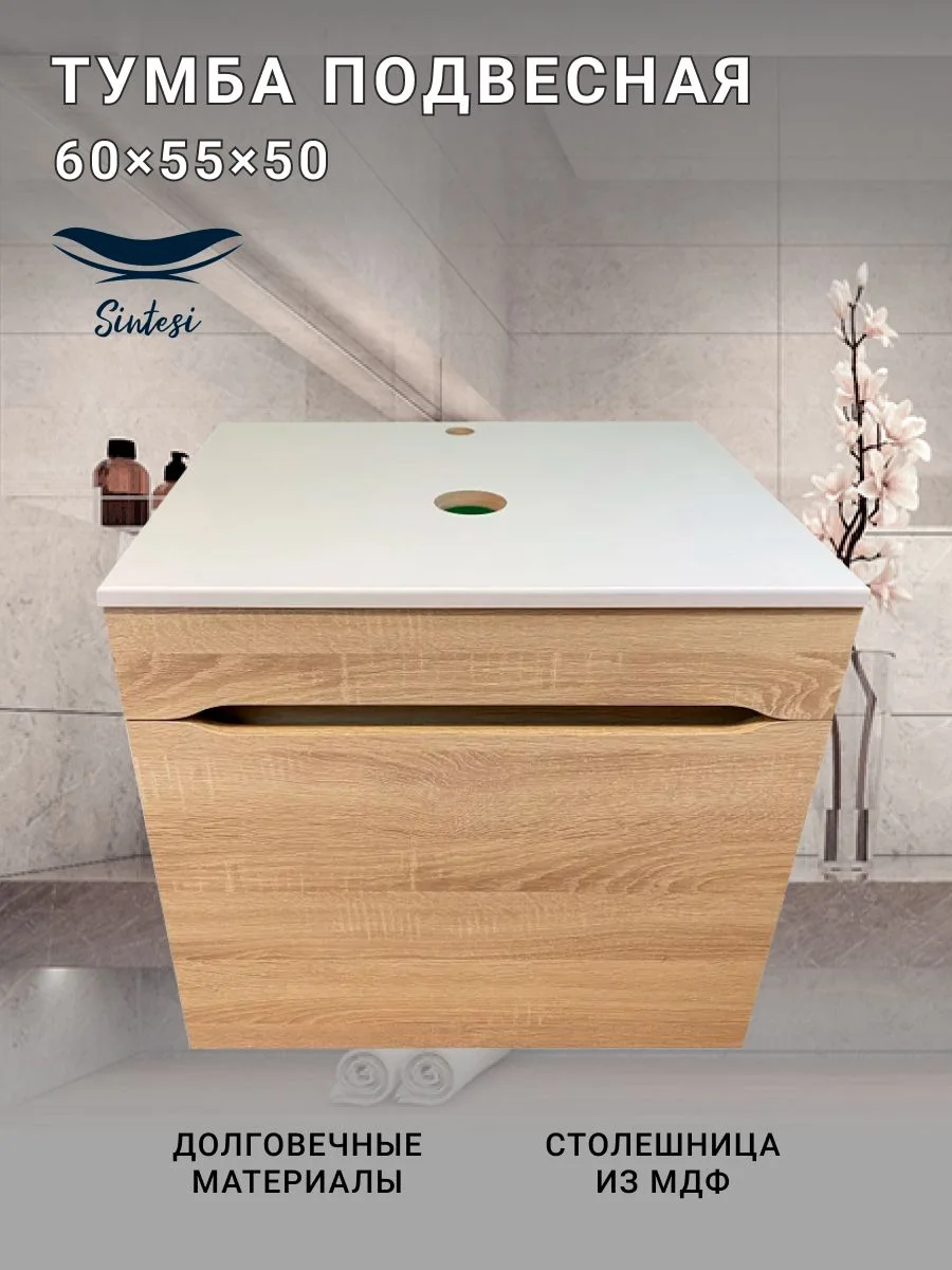 Элегантная и функциональная тумба подвесная с ящиком под раковину и столешницей (STL.W7015) от Sintesi—идеальное решение для вашей ванной комнаты. Эта мебель не только добавляет эстетическую привлекательность, но и обеспечивает удобное хранение.
