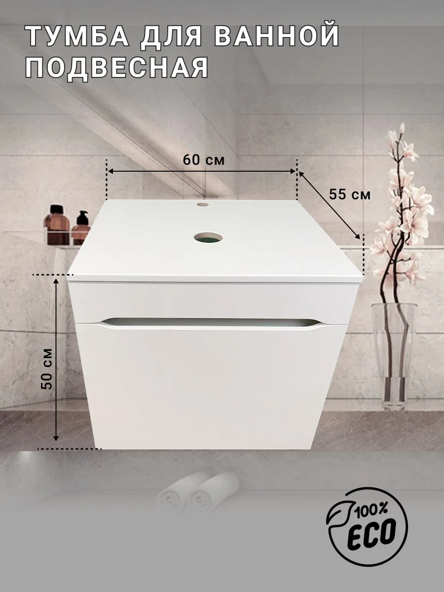 Изделие изготовлено из высококачественных материалов, что гарантирует долговечность и надежность даже при высокой влажности. Эта тумба под раковину в ванную не боится воды и легко моется, сохраняя свой первоначальный вид на протяжении многих лет эксплуатации. Компактные размеры и эргономичный дизайн делают этот умывальник с тумбой для ванной подходящим для любого, даже самого ограниченного пространства.