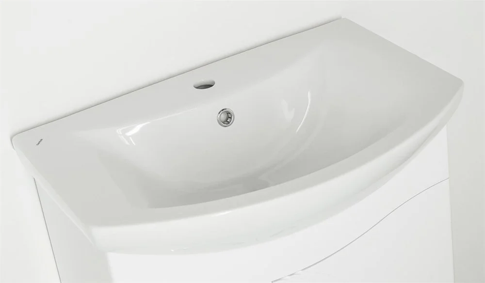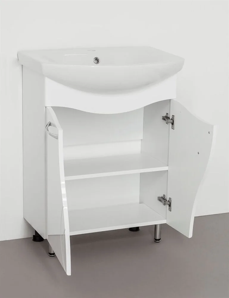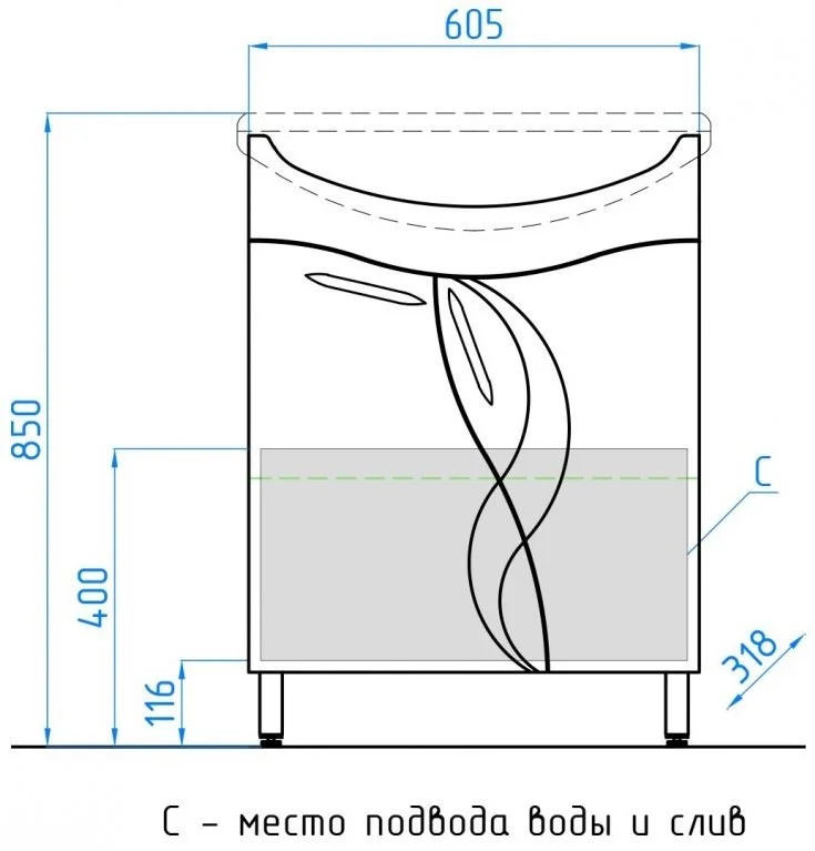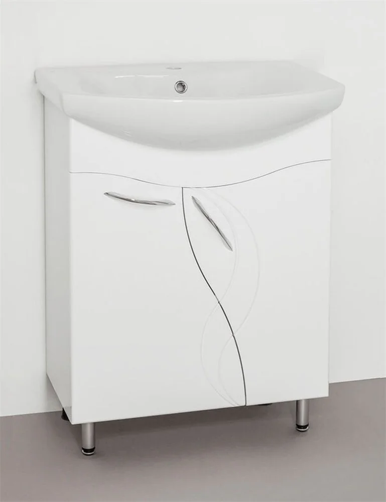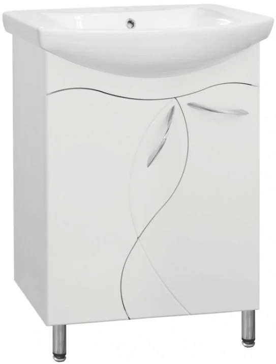 Тумба напольная "Амелия" с декоративной фрезеровкой фасада. Фурнитура - хром, петли на дверцах с механизмом плавного закрывания. Направляющие полного выдвижения Hettich, обеспечивающие плавность и бесшумность хода, высокую надежность и прочность. Данная тумба предусматривает открытую подводку воды