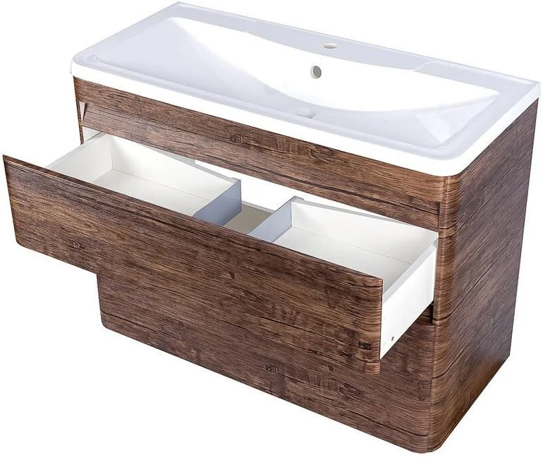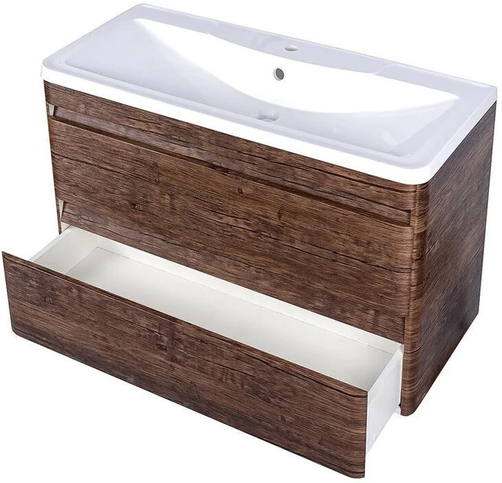 Подвесная тумба с раковиной Атлантика 100 см от Style Line в отделке состаренного дерева является образцом респектабельности и солидности. Несмотря на внушительные габариты, изделие не выглядит громоздко благодаря сглаженным углам и навесной конструкции. Ход вместительных выдвижных ящиков всегда будет оставаться плавным и легким, даже если они будут полностью наполнены, ибо прочные крепления и надежные механизмы доводчиков обеспечат этот процесс. Под такой мебелью удобно убирать, благодаря чему ваша ванная комната будет сиять чистотой и порядком.