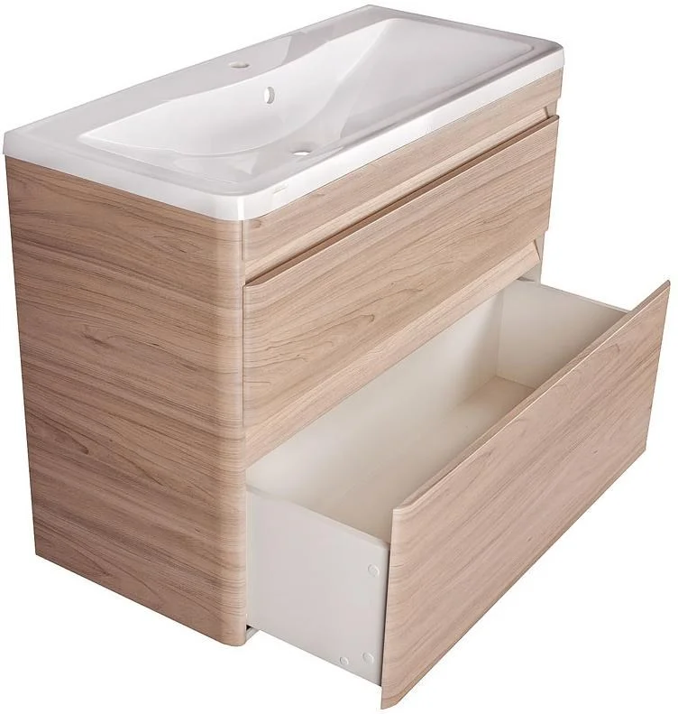 Подвесная тумба под раковину Style Line Атлантика 80 Plus Люкс ясень перламутр, может быть укомплектована долговечной раковиной из литьевого мрамора, станет красивым и практичным дополнением современного интерьера. Выполненная на основе прямоугольной формы с обтекаемыми сглаженными углами, она выглядит невероятно эстетично и респектабельно. Качественная фурнитура с доводкой, встроенная в выдвижной механизм двух ящиков, обеспечивает полноценный комфорт при ежедневном использовании.