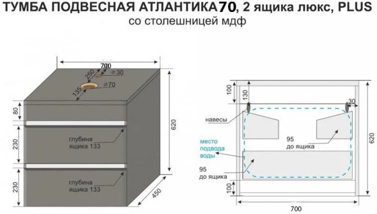 Купить Тумбы подвесные производства Style Line (Россия), коллекция Атлантика, код товара: 178066 можно выгодно в Сантемо.ру: